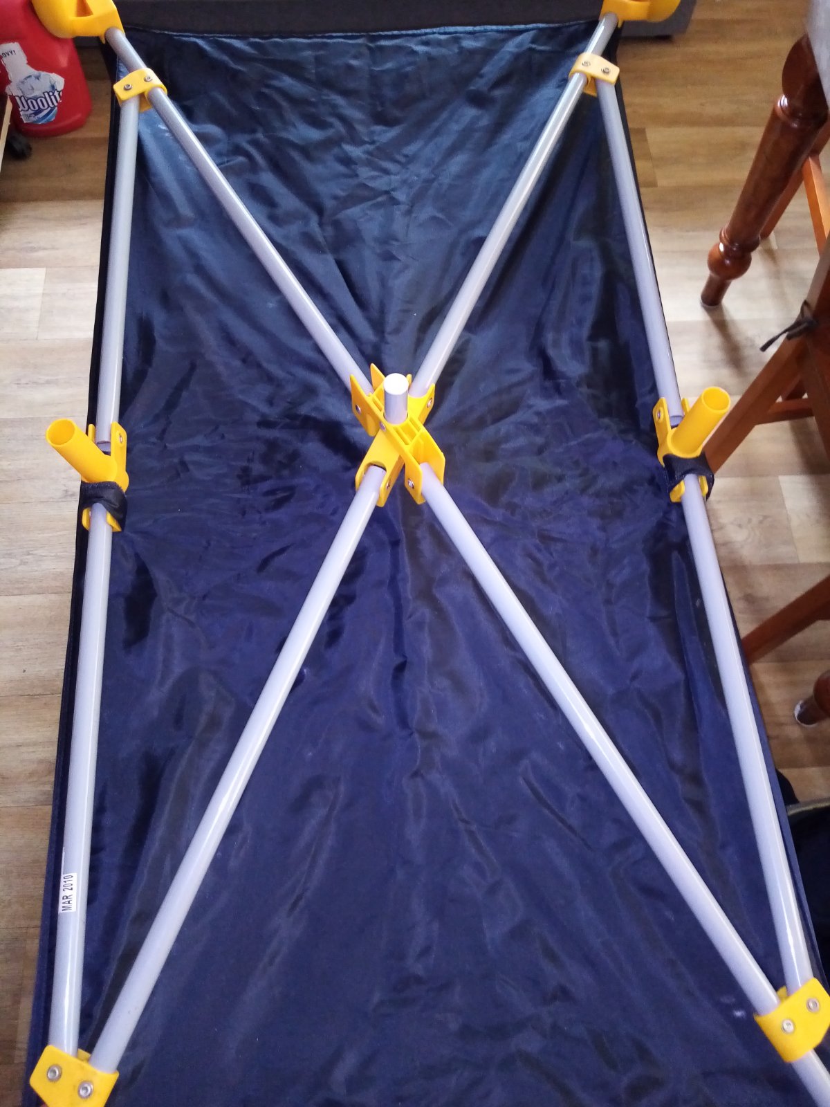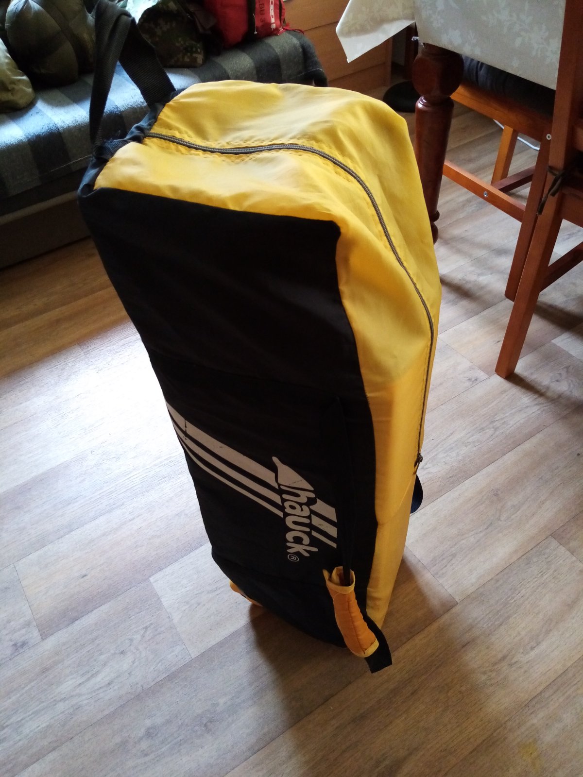 Postieľka ma 2 kolieska (dá sa zložená ťahať ako kufor) a chybičku krásy na sietke (zasite dierky) a škrabanceky na obale (všetko je na foto).