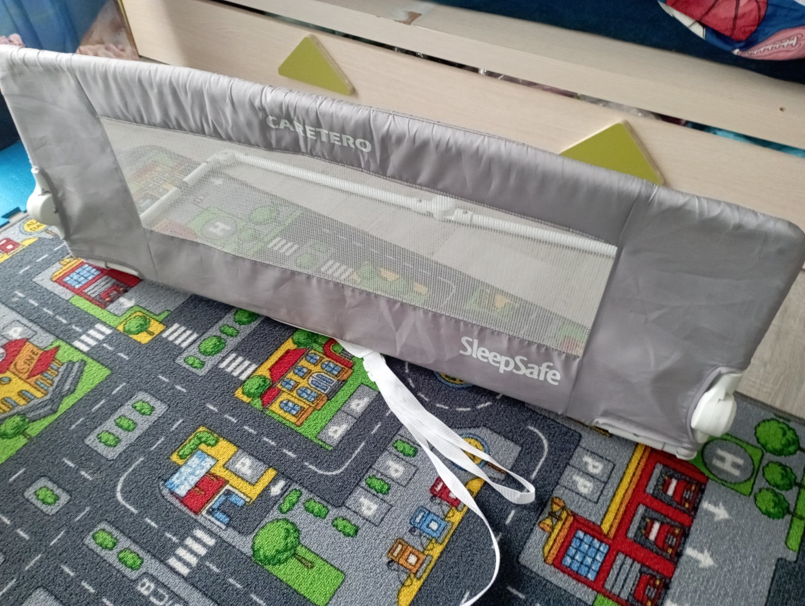 Zábrana na posteľ, rozmer 140 x 45 cm, sklopiteľná. Pre deti od 18 mesiacov. Vďaka sklopiteľnosti sa ľahko ukladá. Bočné spoje, pomocou ktorých sa zábrana otvorí, uľahčujú vstup do postele.