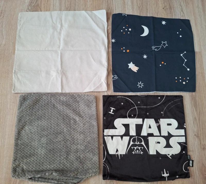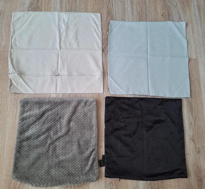 Všetky v top stave, ako nové, bez cbybičky, použité asi dvakrát, zapínanie na zips, sivá jednofarebná 47 x 47 cm, ostatné na vankúšik 40 x 40 cm. Cena spolu 5 eur.