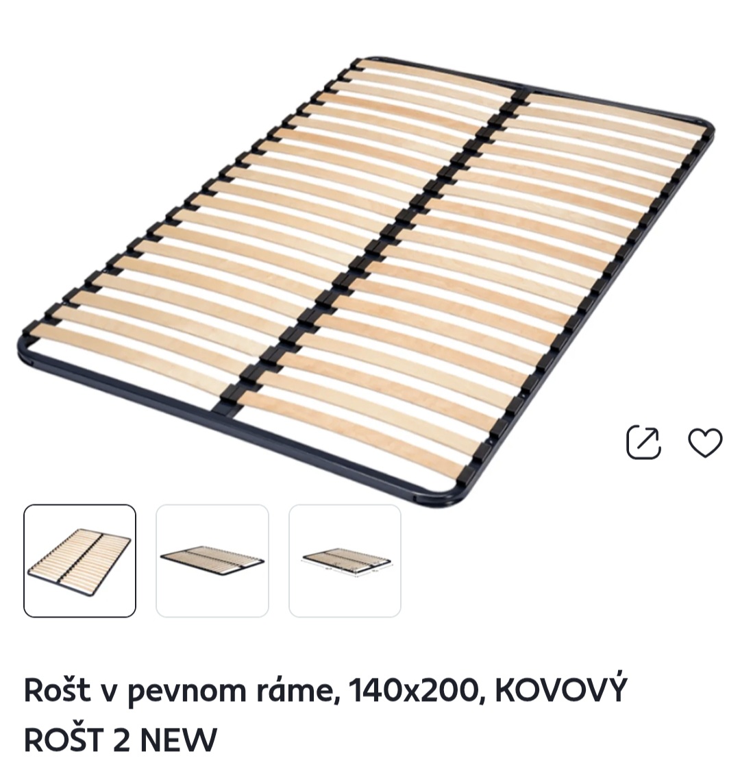 Rošt na posteľ 140x200cm, málo používaný, 28 lamiel,v strednej časti s nastaviteľnou tvrdosťou. Iba osobný odber.