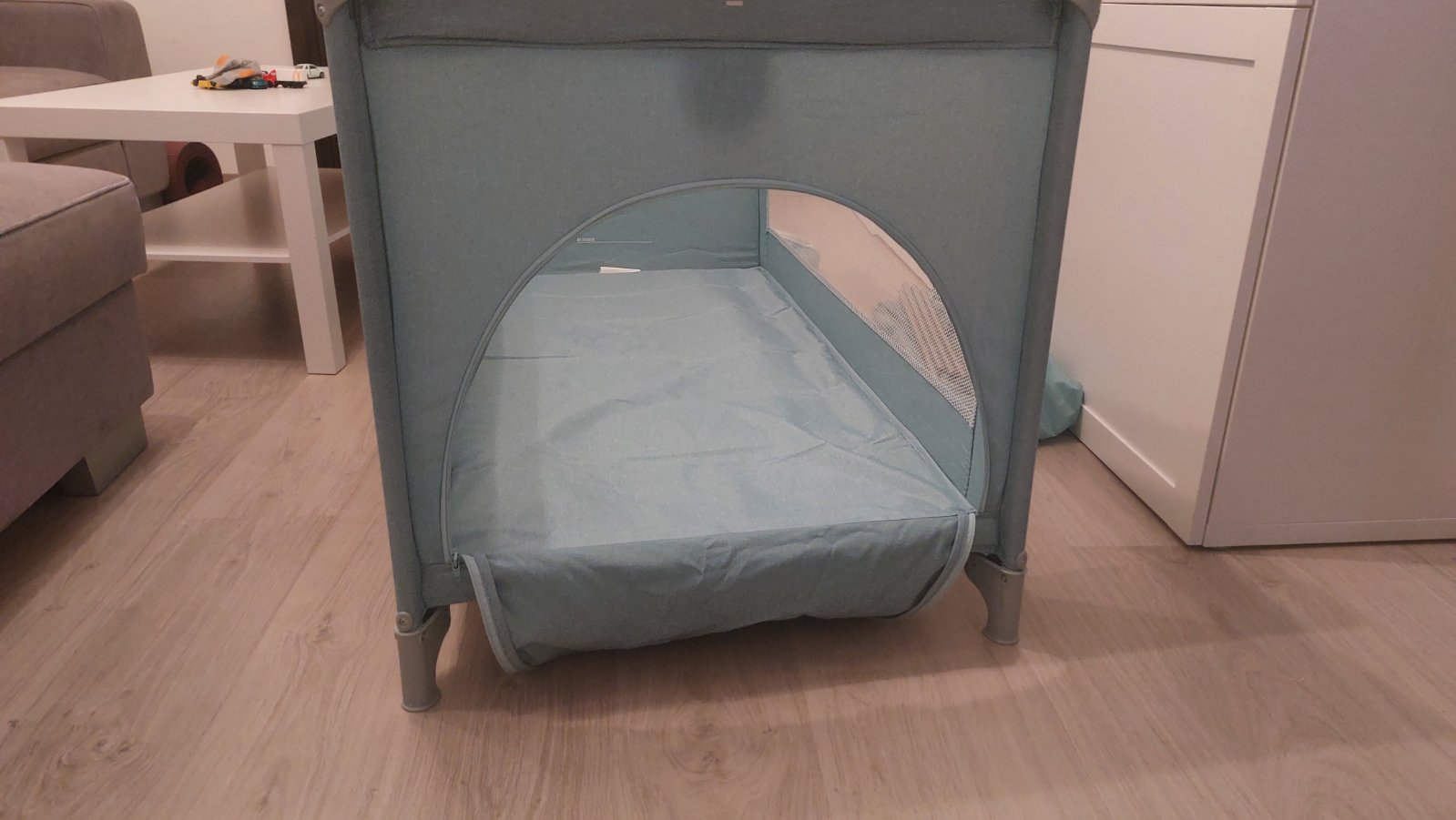 Stabilná konštrukcia, jednoduché skladanie, vhodná na cestovanie aj na domáce použitie. Postieľka má z jednej strany otváranie na zips, vhodné pre rozvoj samostatnosti u detí.
