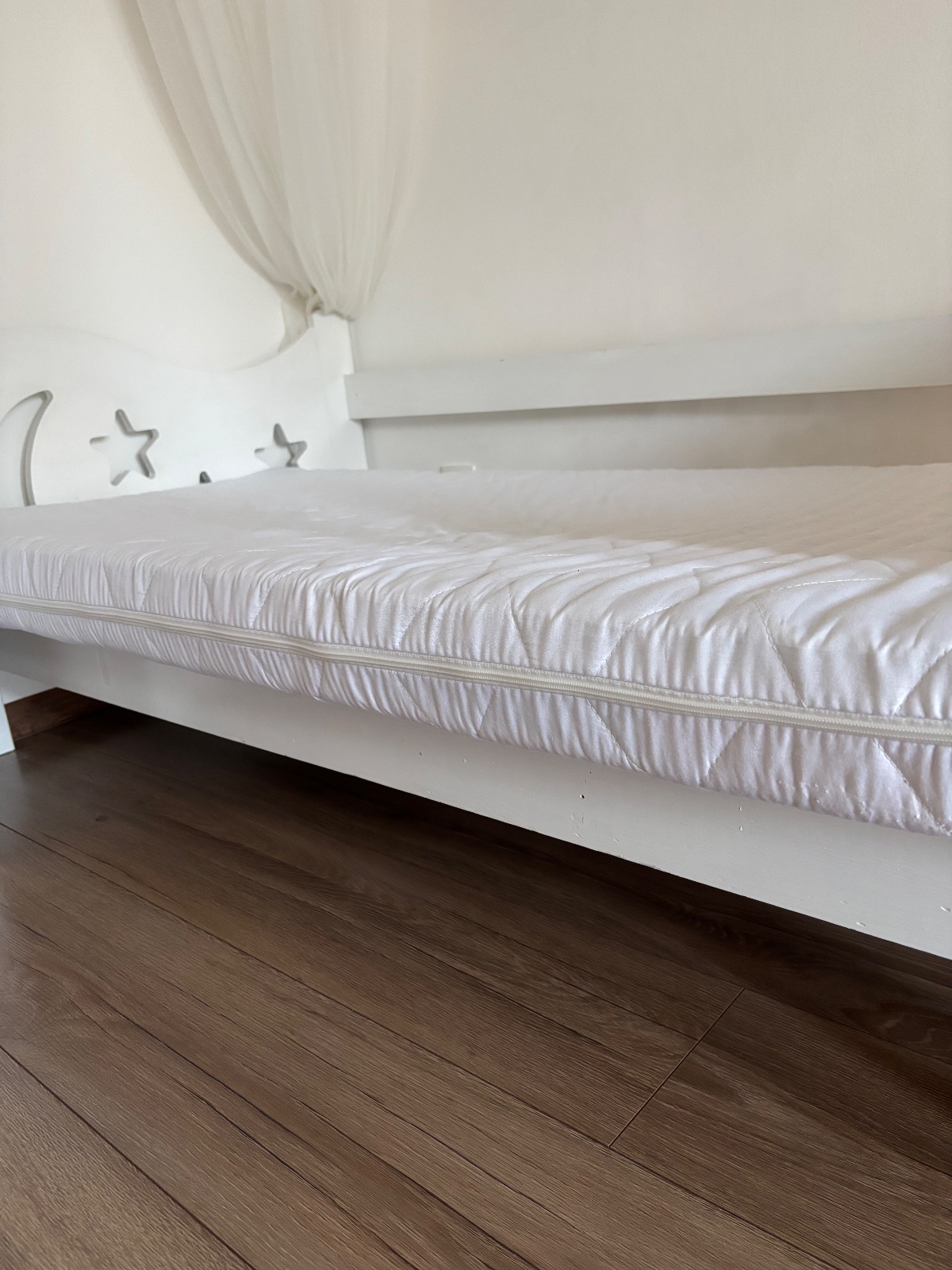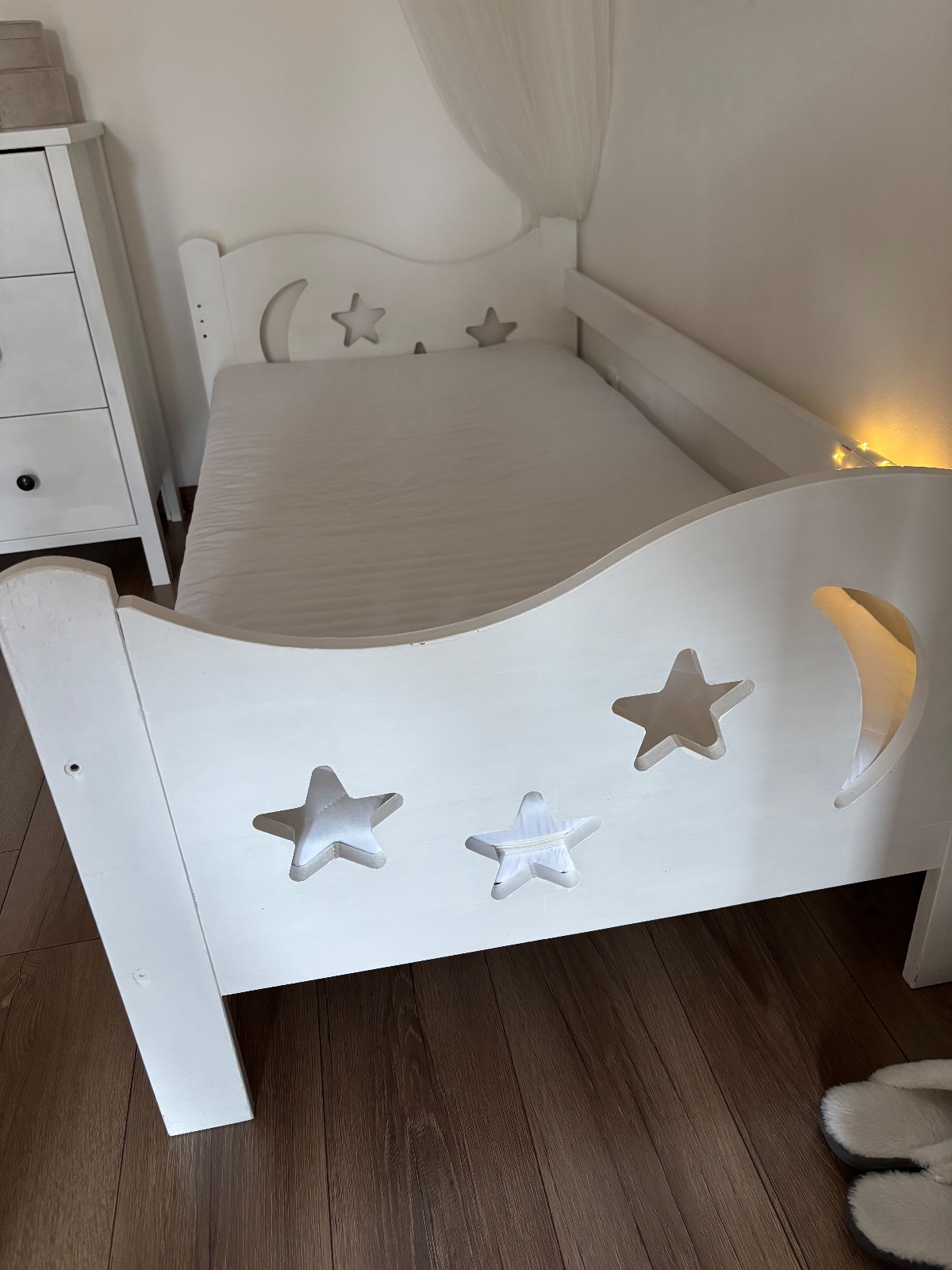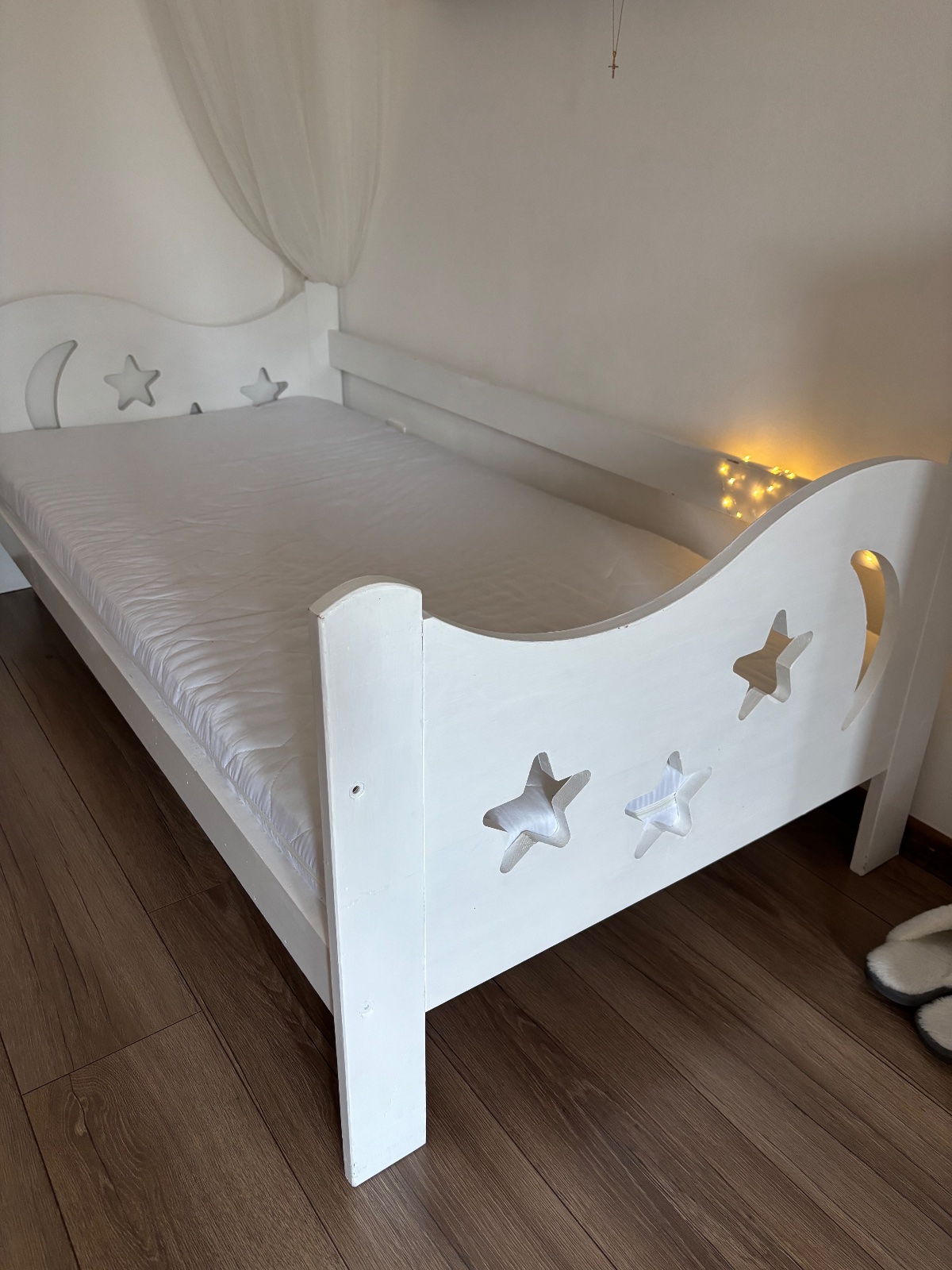 Predám používanú detskú posteľ v zachovalom stave. Posteľ predávam s roštom, bez matraca.