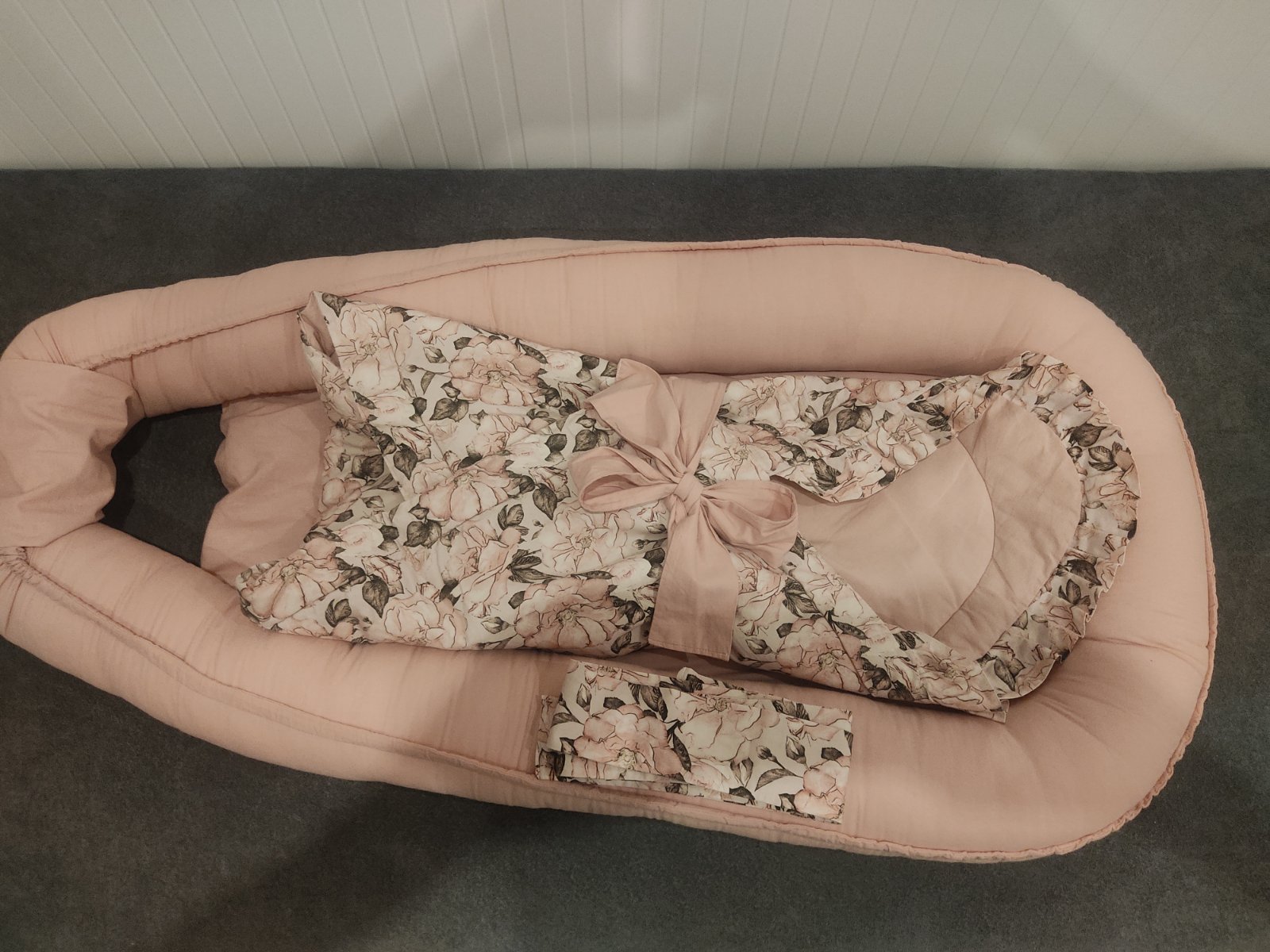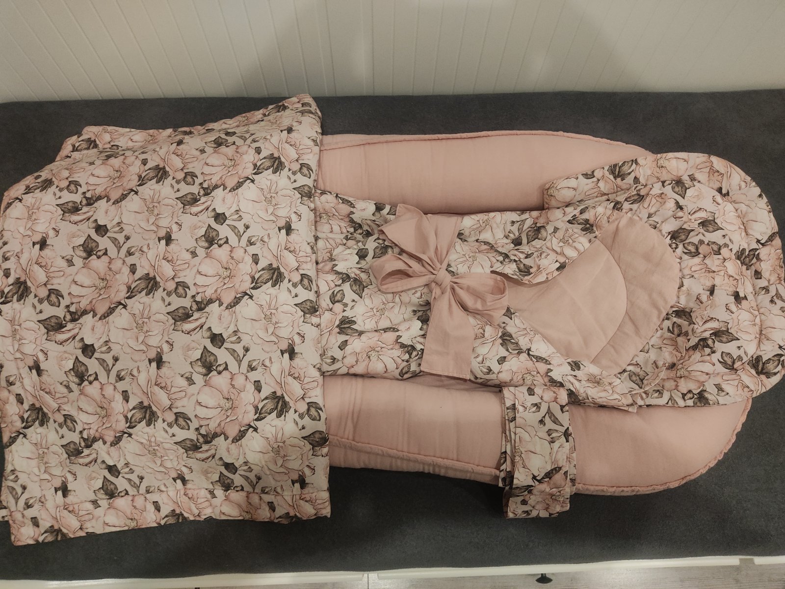 Predám krásne ručne vyrobený set pre dievčatko.Hniezdo väčšie(dĺžka 100cm),zavinovačka s 2 farbami mašlí,vankúšik a paplonik pre babätko.Vsetko v zachovalom, bezchybnom stave,cena pôvodne 140€(mám ešte faktúru).