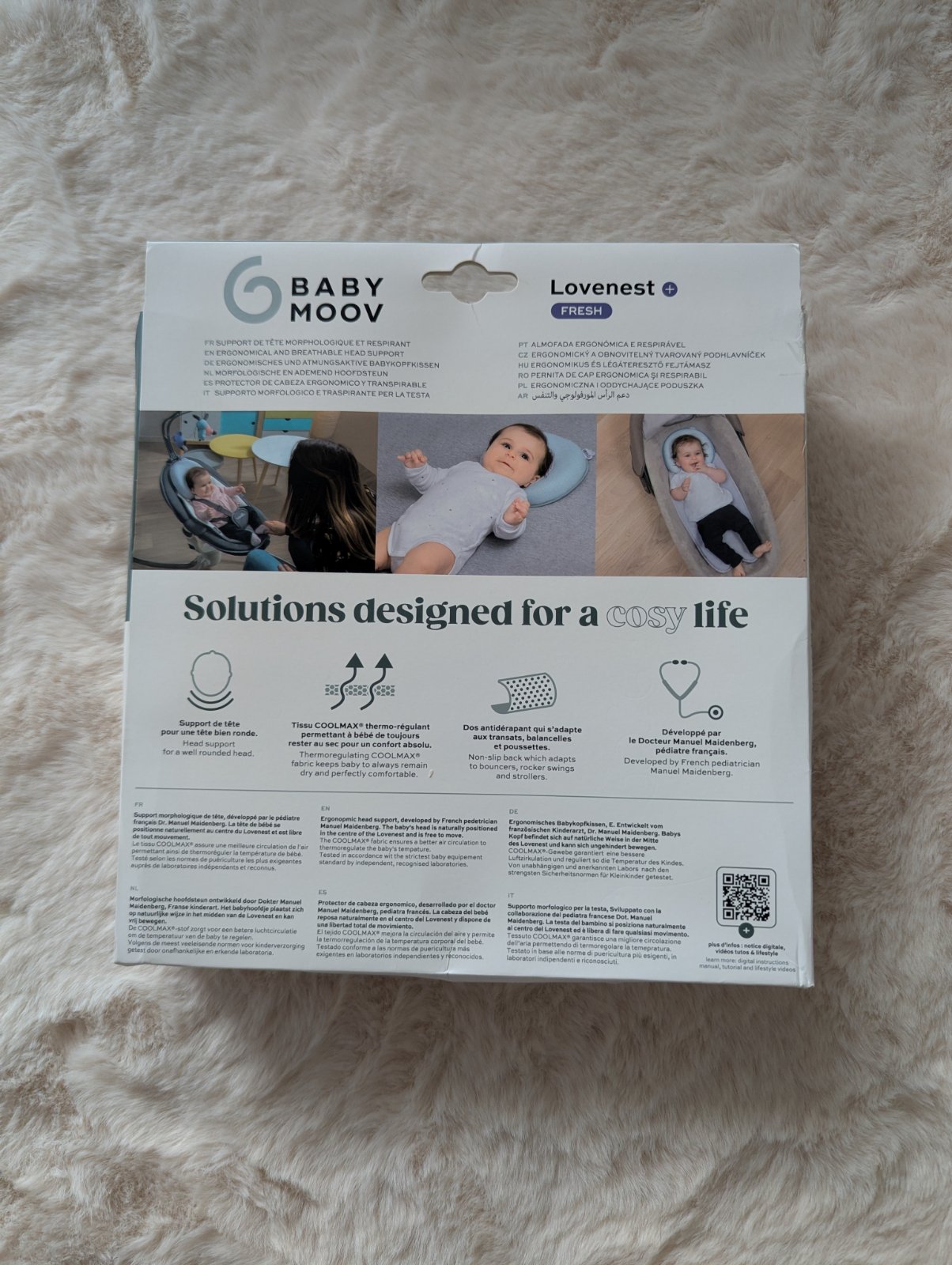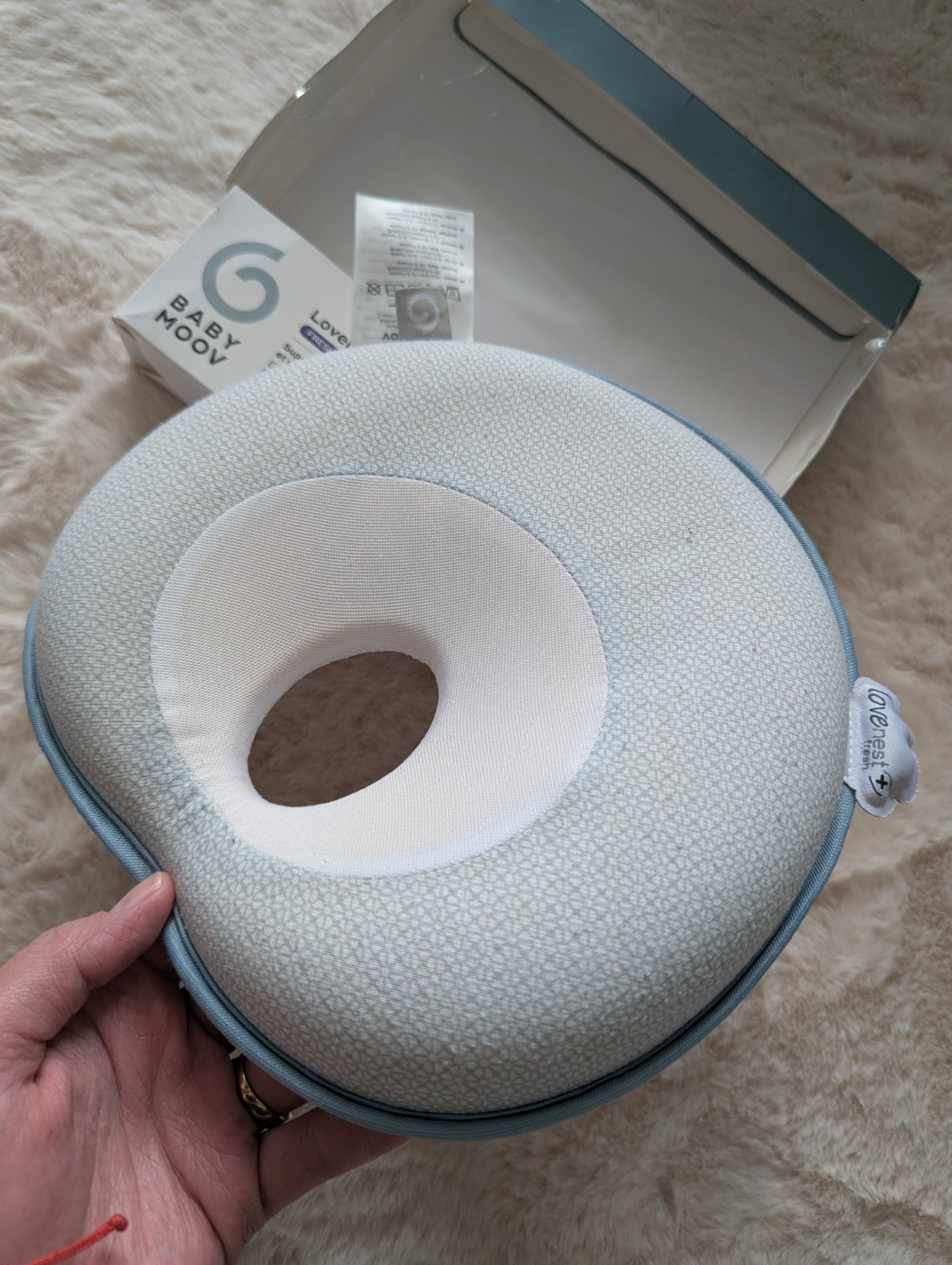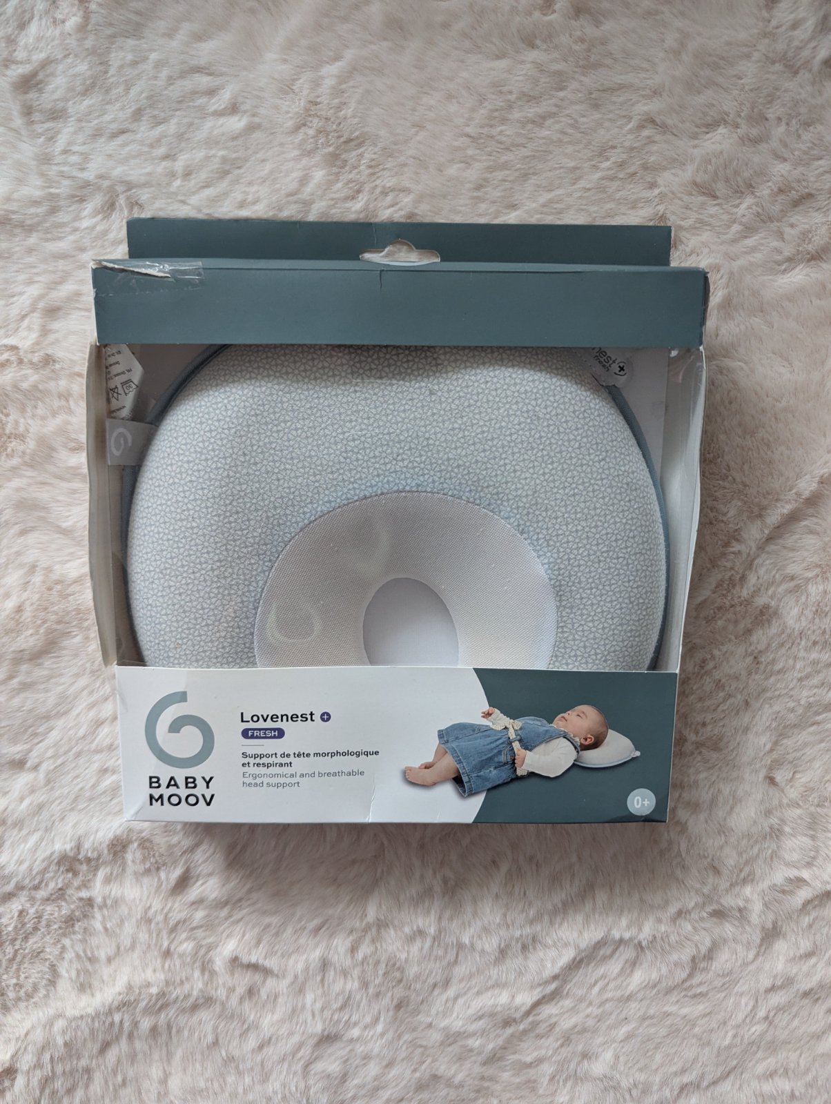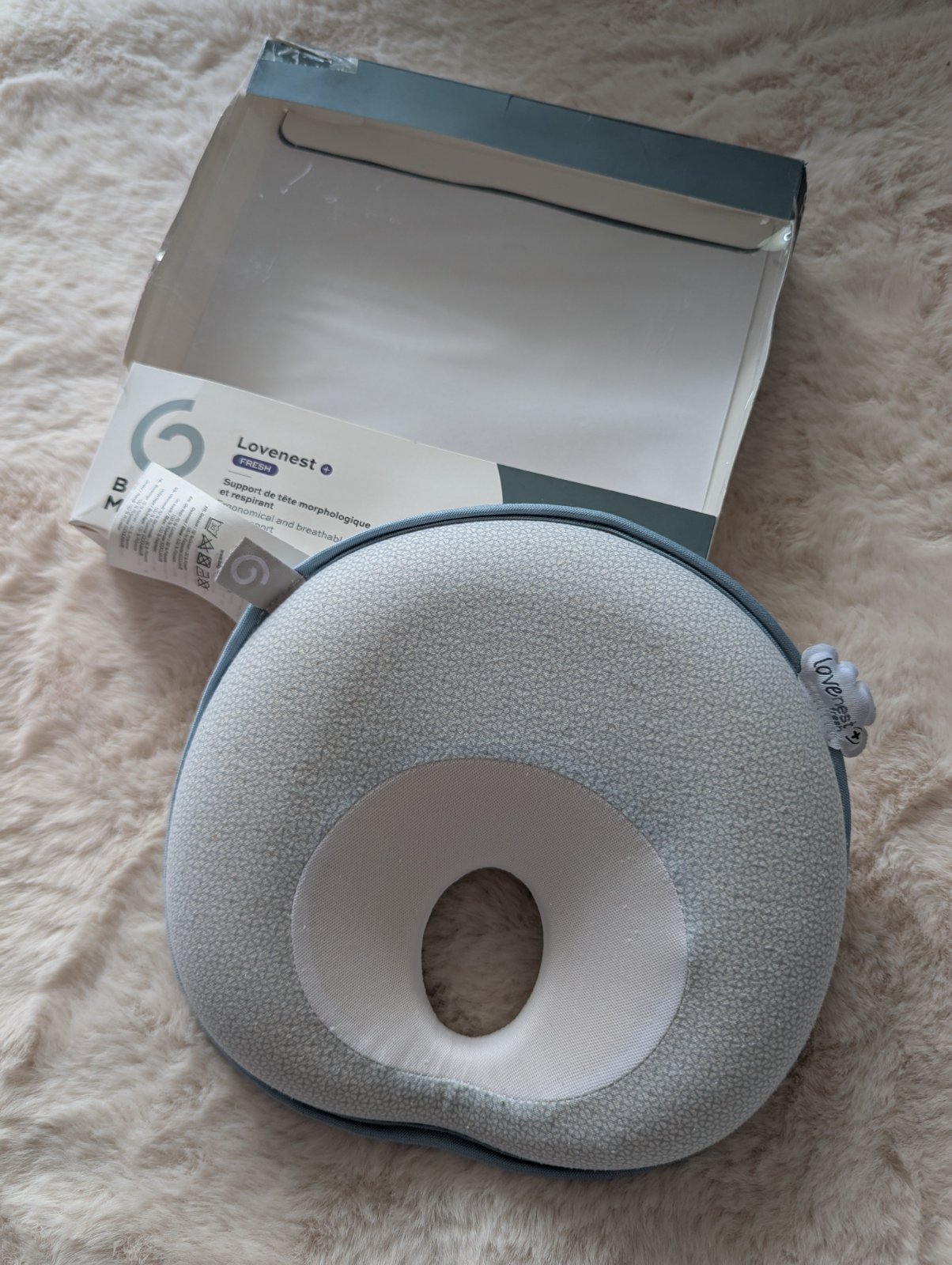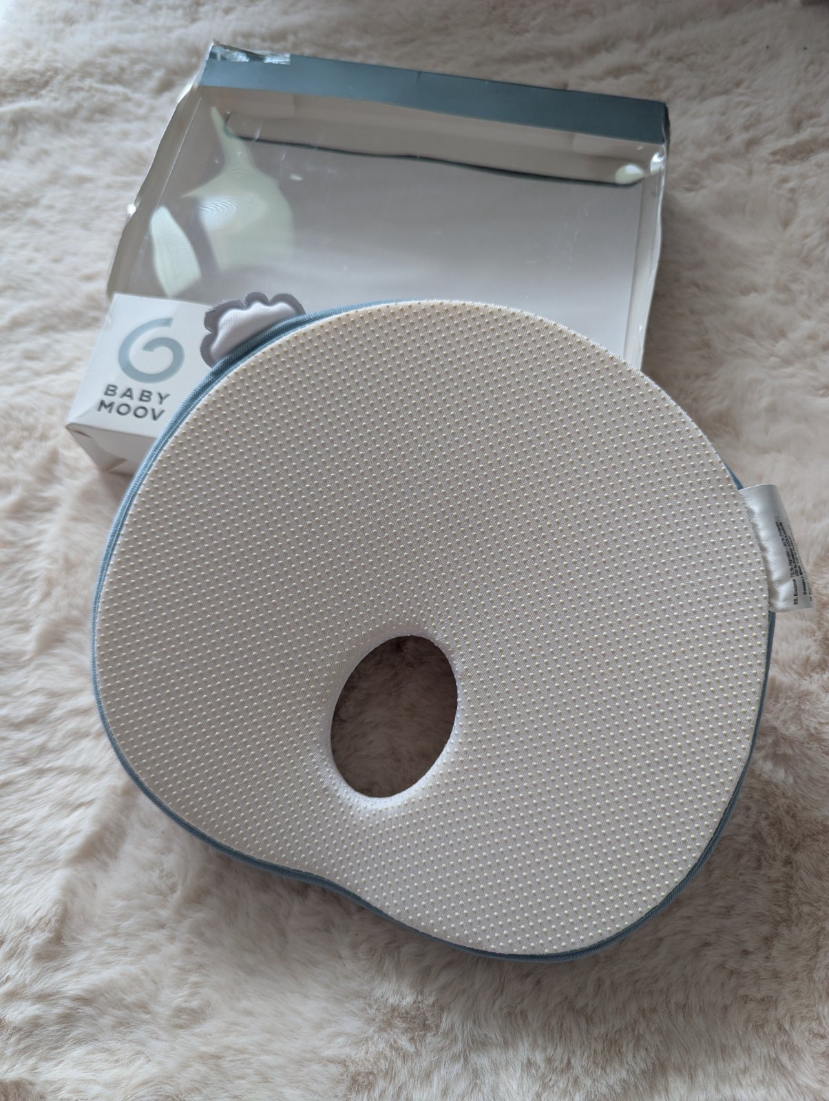 Redukčný vankúš proti zaležanej hlavičke bábätka. Je vhodný na každodenné aktivity bábätka. Bol používaný, má aj známky používania (žmolky, vyblednutá farba vankúšika), inak je v peknom stave. Akurát krabica je už dosť poškodená.