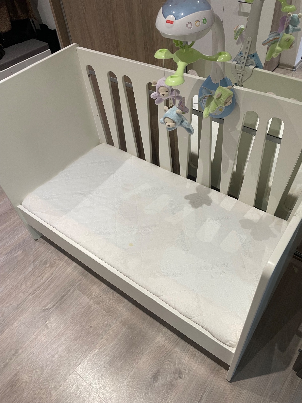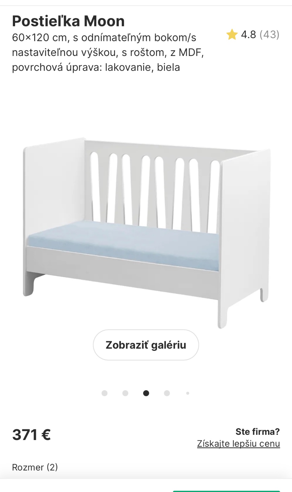 Postielka ma obe strany ! Len som fotila bez jednej strany …Detská postieľka má veľkosť 60 x 120 cm a jej súčasťou je aj rošt. Výšku matraca je možné nastaviť do troch úrovní a keď zložíte postranné bočnice, máte hneď aj prvú plnohodnotnú posteľ pre vaše dieťatko.