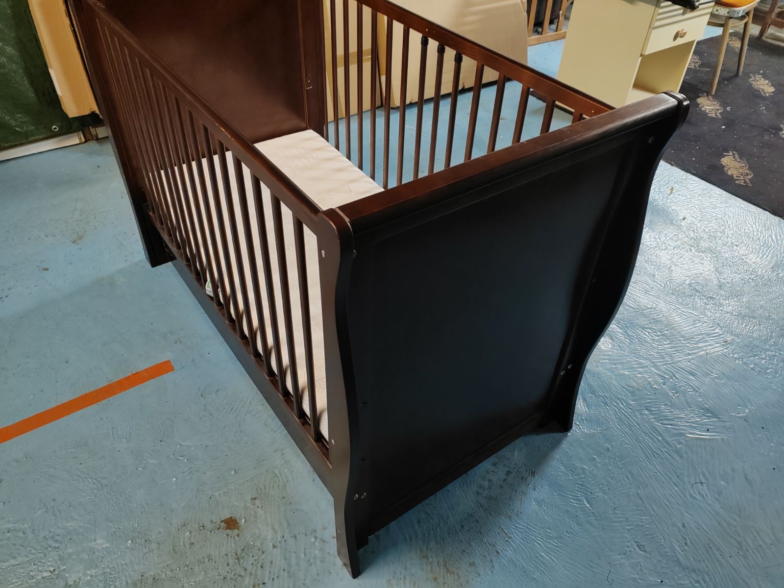 - farba čokoláda, s možnosťou odmontovania dlhej bočnice a vymeniteľnými bezpečnostnými trojuholníkmi, čím sa dá prisunúť k manželskej posteli a neskôr môže slúžiť ako efektná pohovka/gaučík v detskej izbičke
