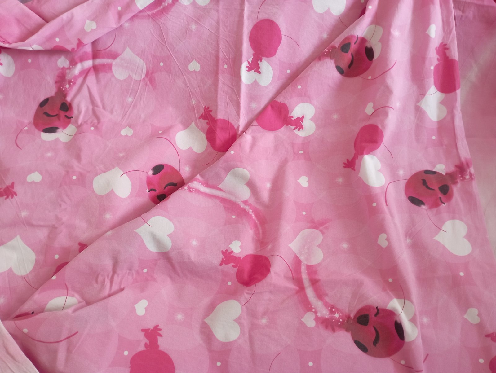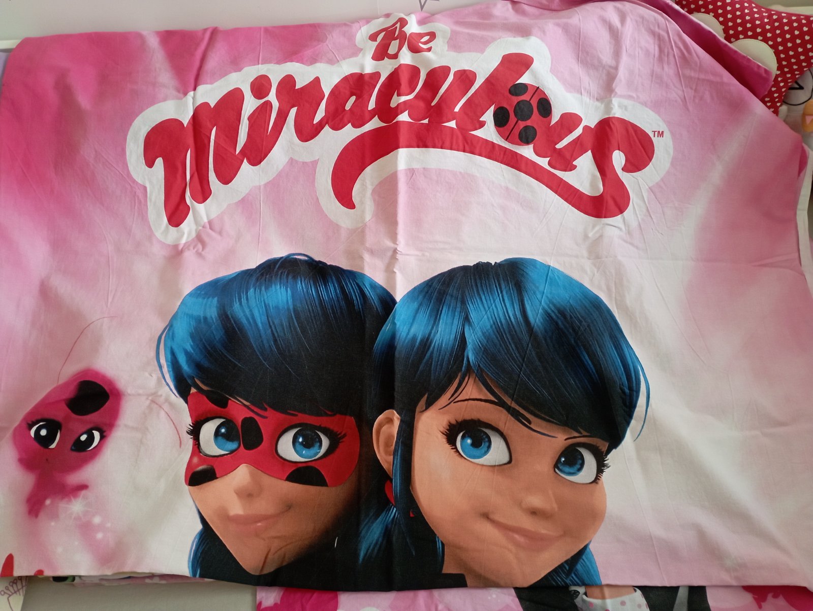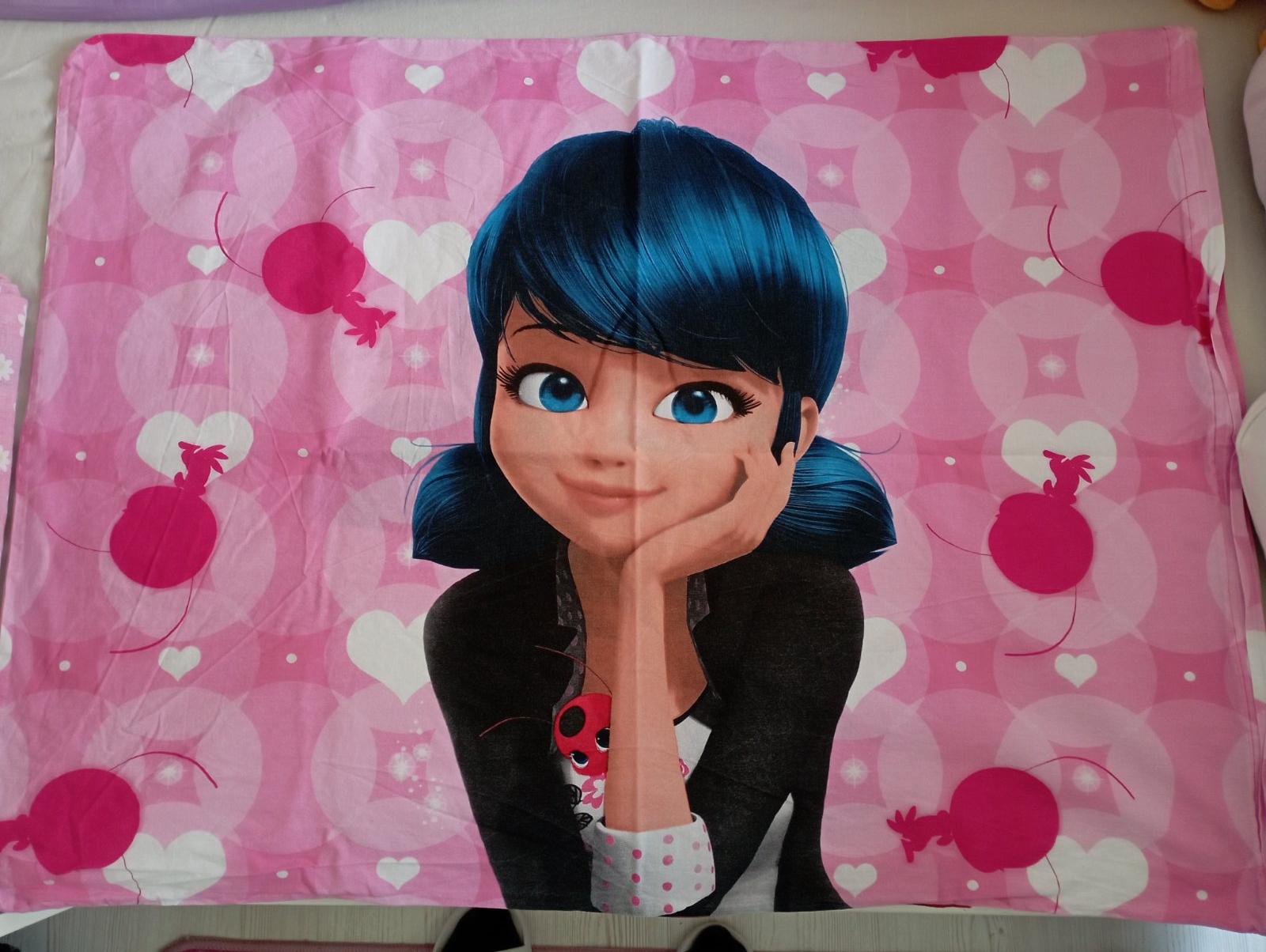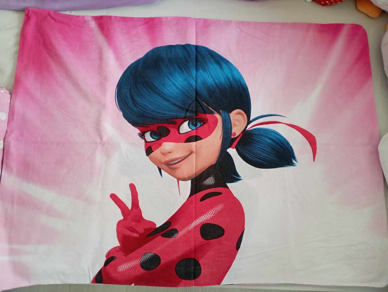 Predám obliečky s motívom Čarovnej lienky. Sú vo veľmi dobrom stave bez poškodení. Materiál: 100% bavlna. Zapínanie na zips. Je to klasický rozmer. Vankúš 70x90, prikrývka 140x200. S kazdej strany iný motív.