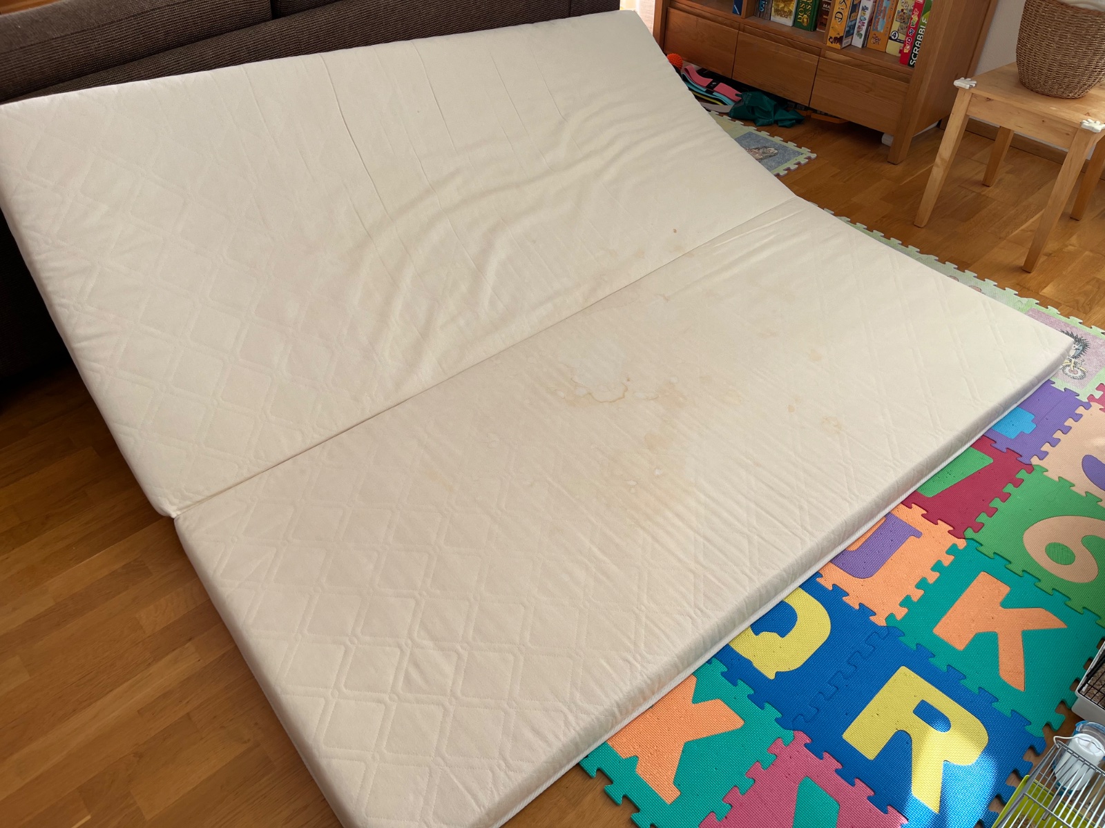 moze byt zlozeny na jednej posteli alebo sa rozlozit ako kniha pri vytiahnuti na dve lozka.