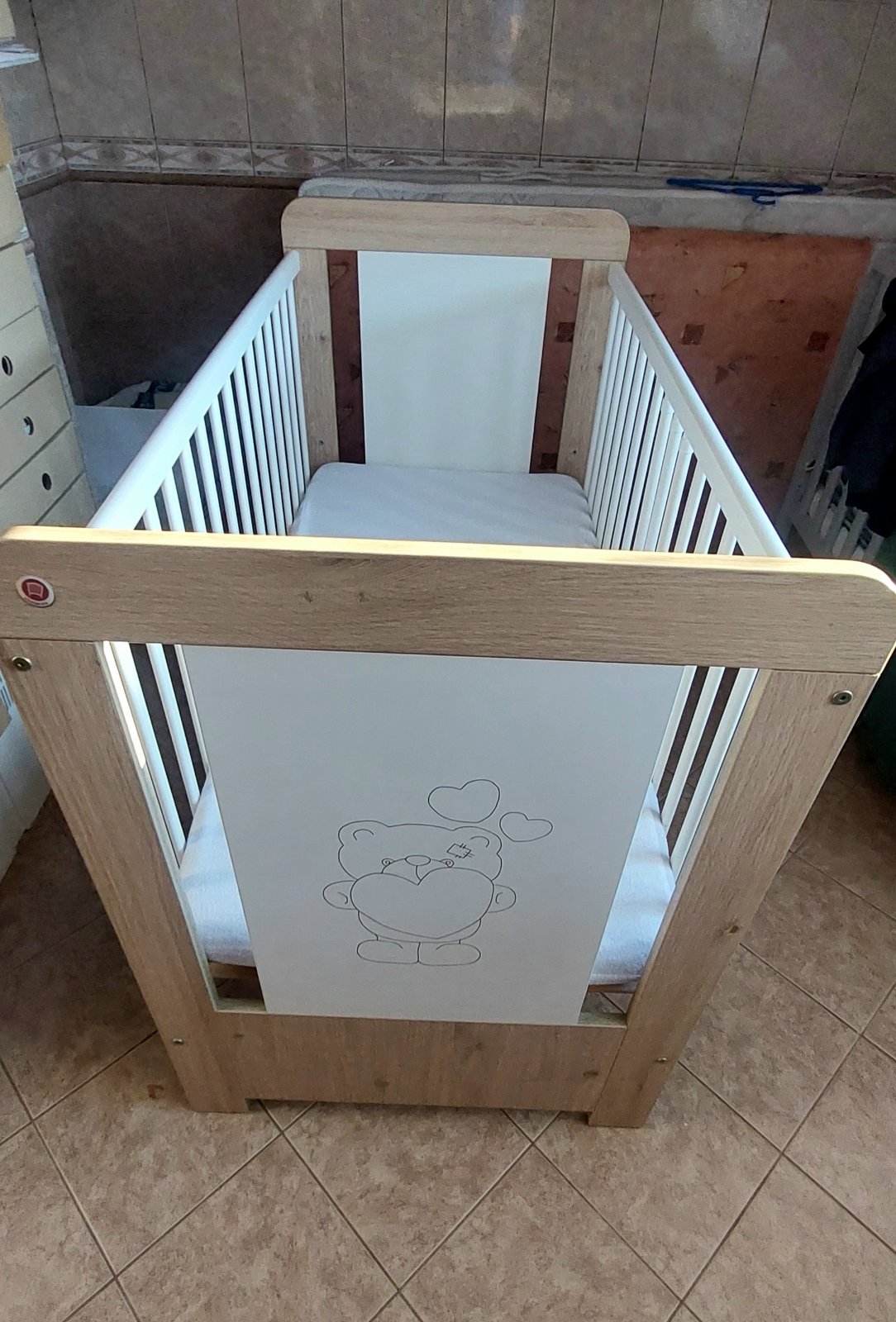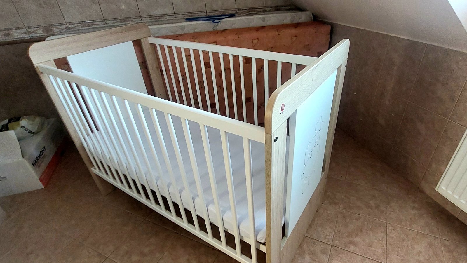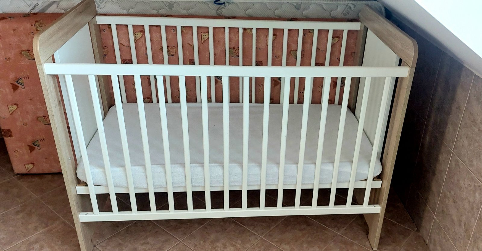 Vyborny stav - postielka bola pouzivana len u starych rodicov. Matrac mozne nastavit v troch polohach. Cena aj s matracom a mantinelom.