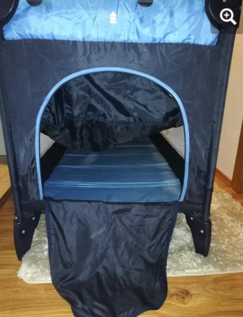Cestovná postieľka, nefunkčný zips, stranu sme otáčaní k stene.