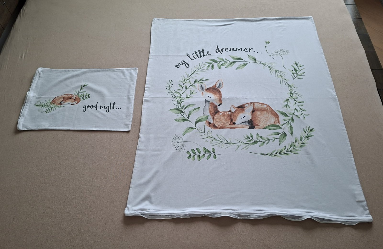Obojstranné detské obliečky s roztomilým motívom lesných zvieratiek vo veľmi dobrom stave (bez dierok, fliačikov a žmolkov; jemnulinko spraté). Obliečky sú ušité z bambusu (50%) a bavlny (50%). Zapínanie na zips. Značka: Maya Moo (poľský výrobca).