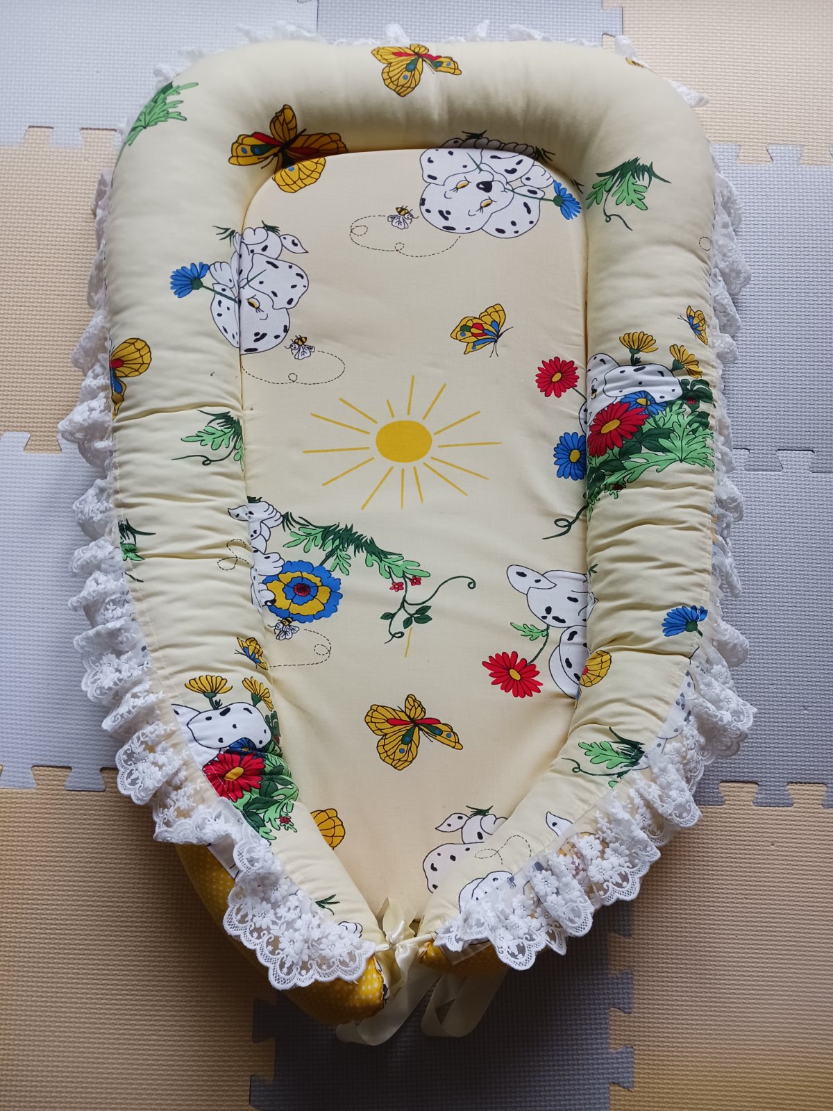 Pouzivane hniezdo.Miesto kde dietatko lezi je tvrdsie,takze sa to hniezdocko da super preniest aj so spiacim dietatkom.