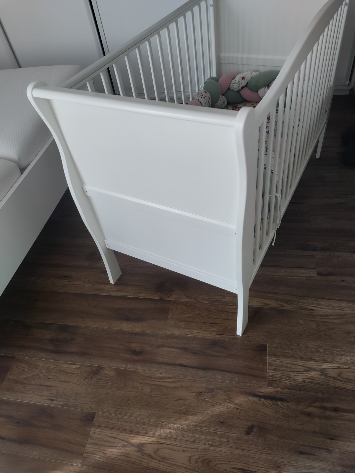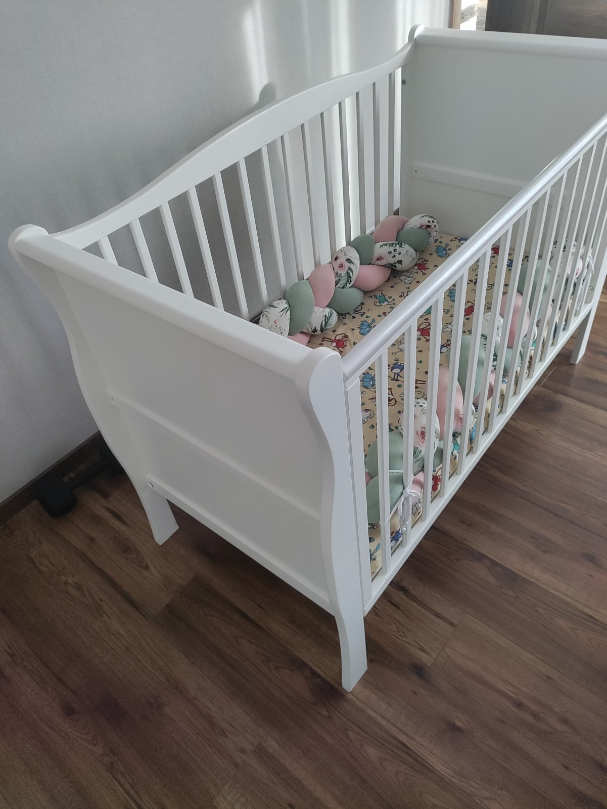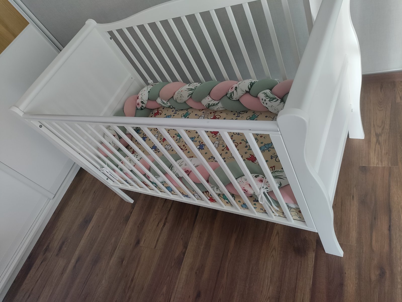 Detska postielka, dve nastavitelne vysky matraca, odoberatelny bok. Momentalne bok nemame namontovany tak na fotografii chyba. Male odrenia, da sa natriet bielou farbou kedze postielka je drevena. ...