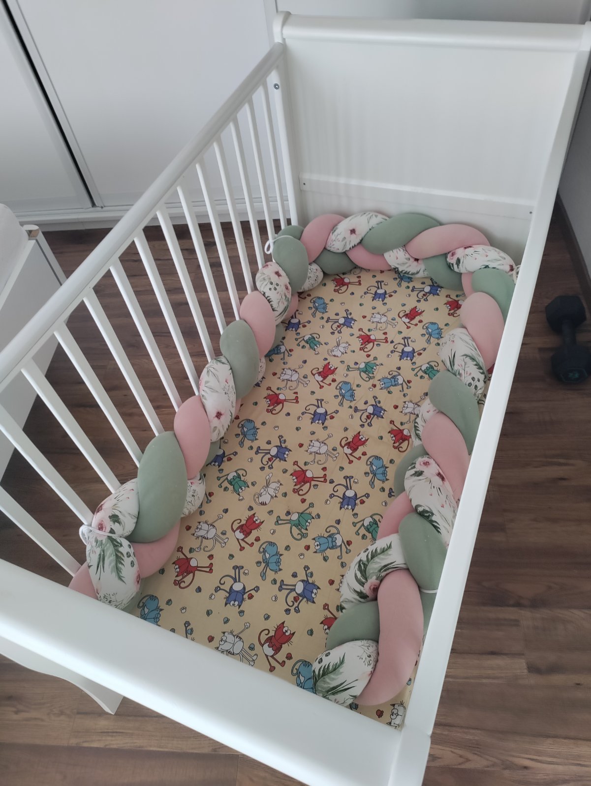 Postielka používaná 1 dieťaťom, mini škrabance pri odstránení nálepky.ktore sa dajú zatrieť bielou farbou. Materiál drevo, inak v top stave, používaná pár mesiacov.