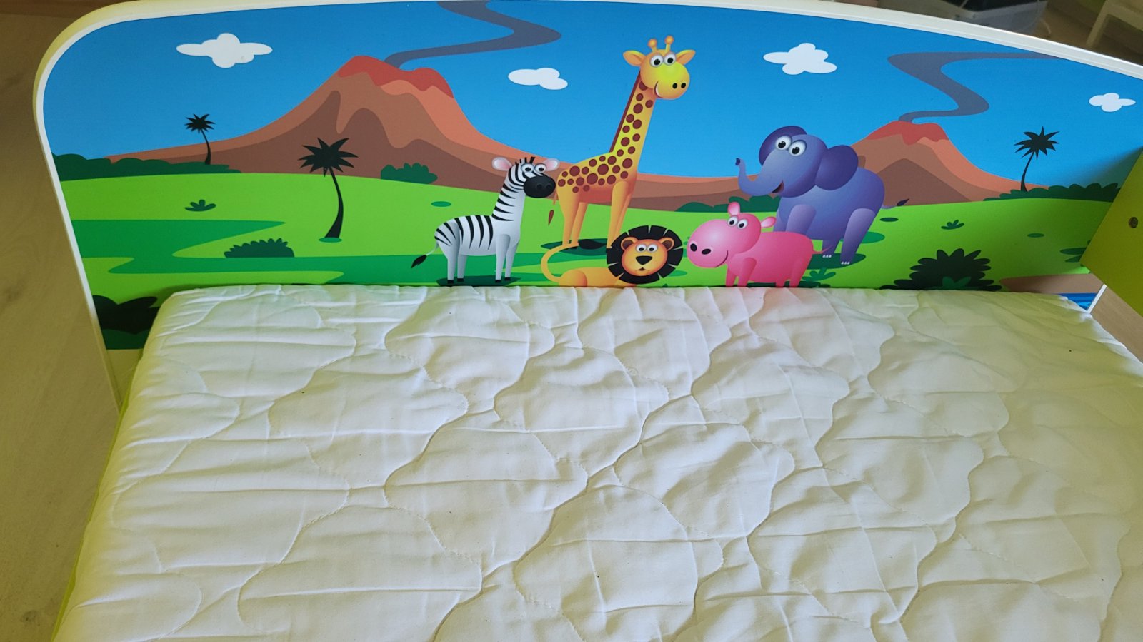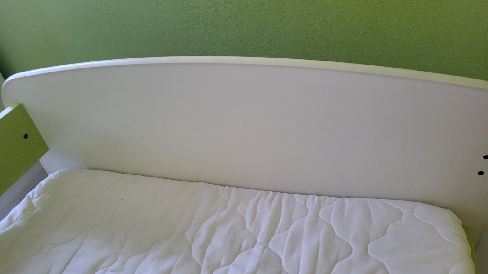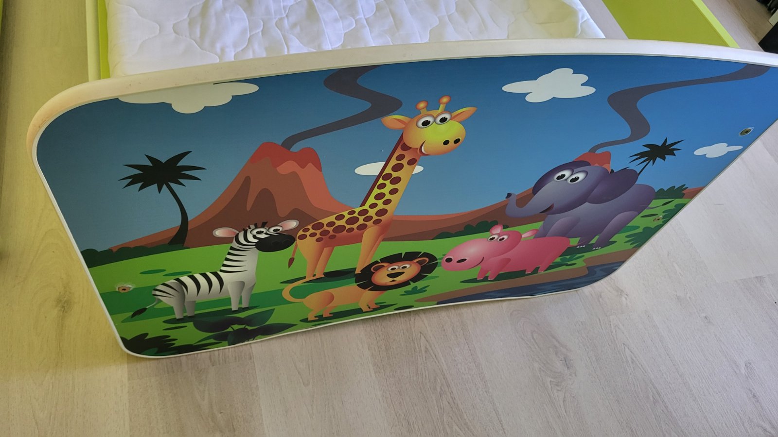 Destká postieľka zn. Babynabytek. Krásna, vo výbornom stave. Jediná vada je nalomená jedna lišta z roštu. Cena je vrátane roštu a matracu, zásuvky na kolieskach a zábrany. Je to antialergický matrac s kokosovým vláknom. Posteľ je dlhá 160 cm, šírka bočného panelu je 90 cm, matrac má 80 cm. Nutný osobný odber v BA - Karlova Ves.