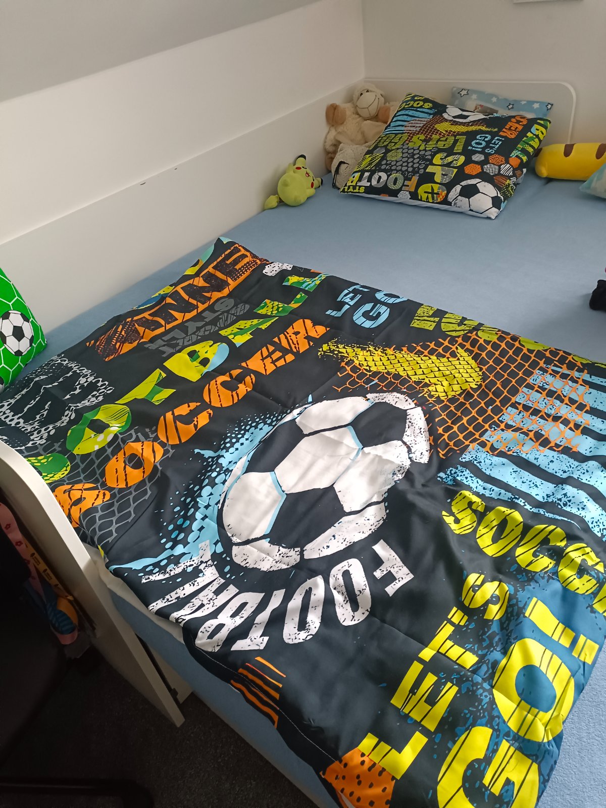 Predám nové posteľné obliečky pre fanúšika futbalu.nam nejako nesadli.je to .hladký materiál obsahuje 1x navlecka na paplón (klasický Veľký)2x návliečka na podusku (ako na fotke).cena 7€+ poštovné