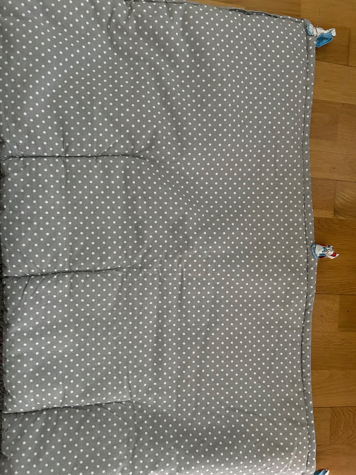 mantinel okolo postielky,ako novy,maly nikdy v postielke nespal. Mam k nemu extra uplne nove postelne pradlo v rovnakej sade za15€ (15€ mantinel a 15€ postelne pradlo ) vsetko kupovane v Lutzzz Par...