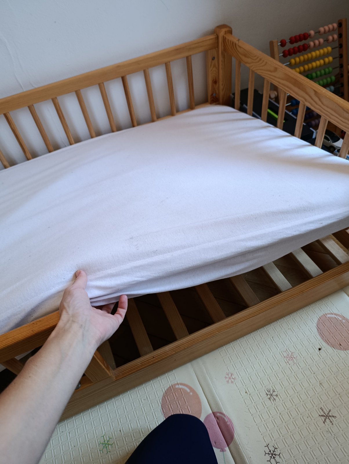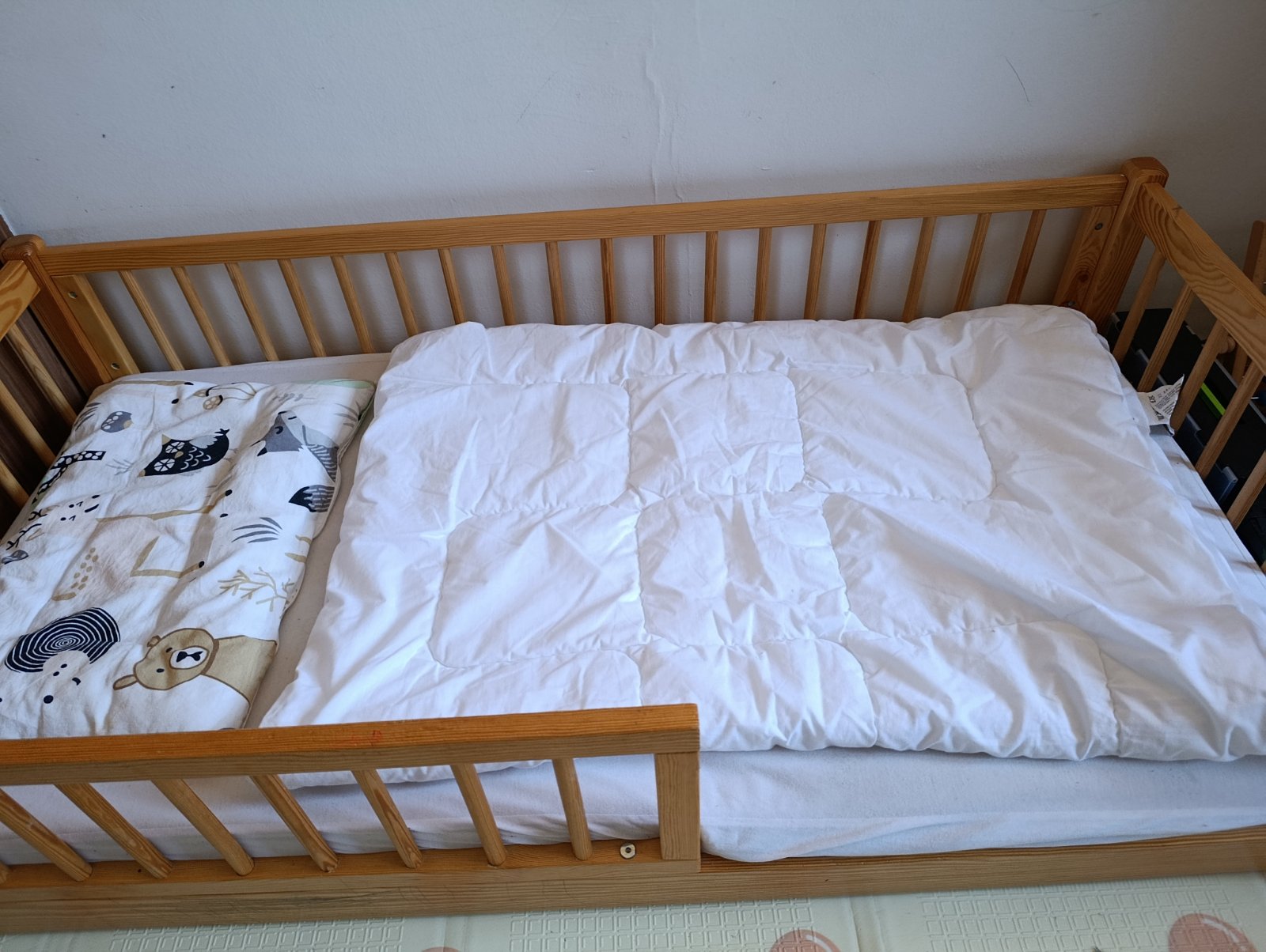 Predám nízku Montessori postel s bočnou zabranou z borovicového dreva, rozmer 140x70 cm. Ponúkam ju aj s matracom, rovnako takmer nepouzitym a nepremokavou plachtou, ktorá rozmerovo sedí k matracu. Syn v postieľke spal len niekoľkokrát, hrával sa v nej a nesie len drobné známky používania, ktoré nezasahujú do funkčnosti, viď foto. Posteľ na osobný odber.
