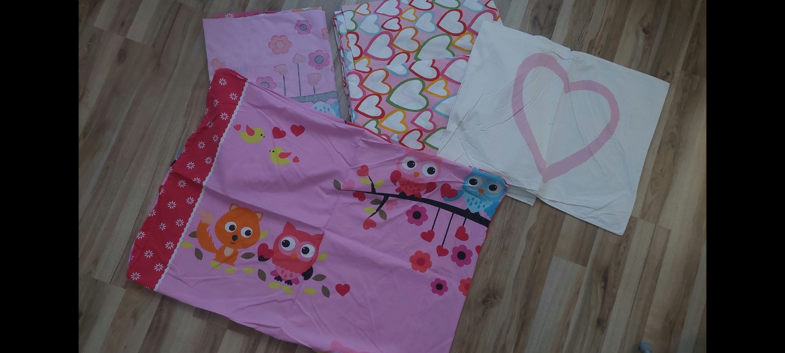 Predám obliečky vo vynikajúcom stave, srdiečkované 2x Ikea - majú menšiu obliečku na vankúš , sovičkove z Lidla, výborná kvalita všetky. Cena spolu.