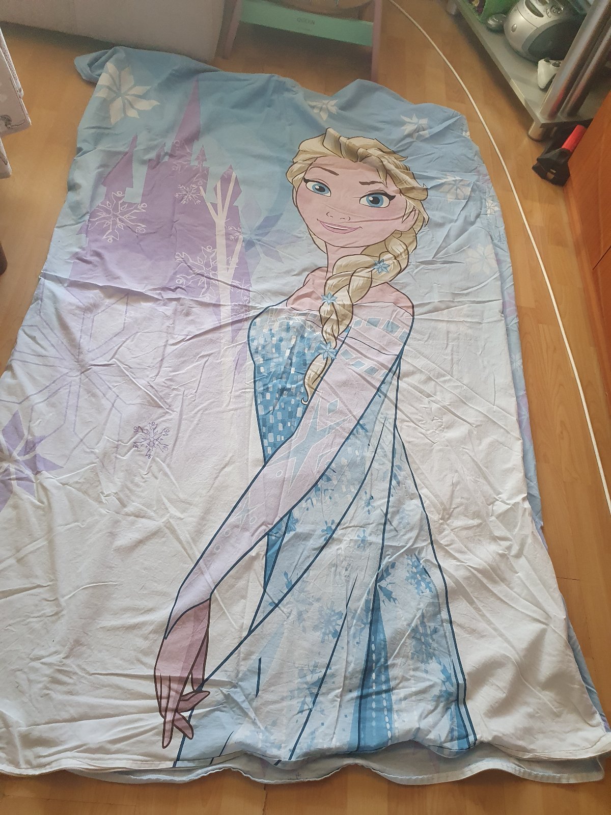 Predám návliečky na vankúš a perinu z rozprávky Anna a Elsa. Rozmery vankúša sú klasické 70x90 cm a návliečka na paplón je tiež klasický rozmer 140x200 cm.