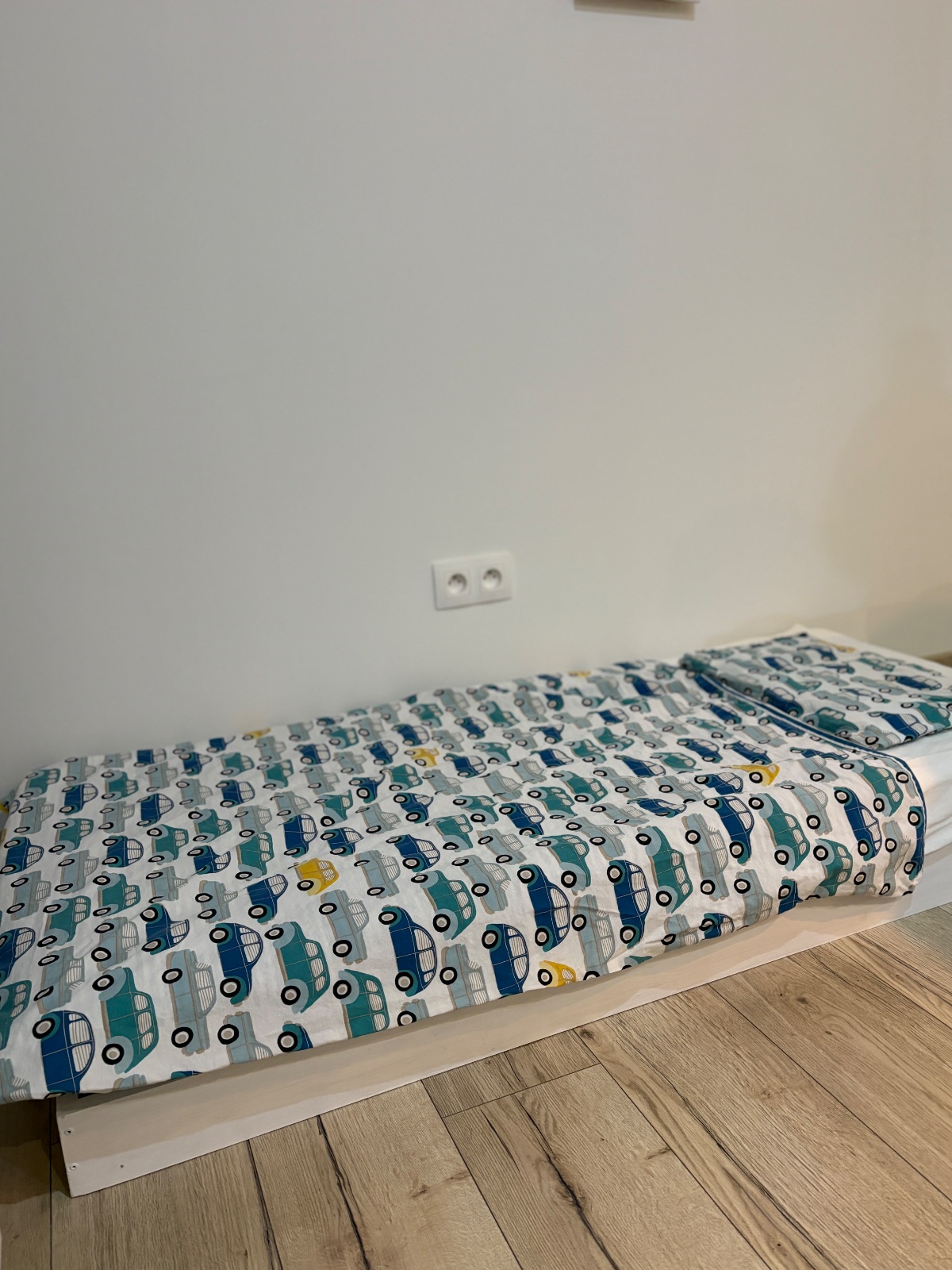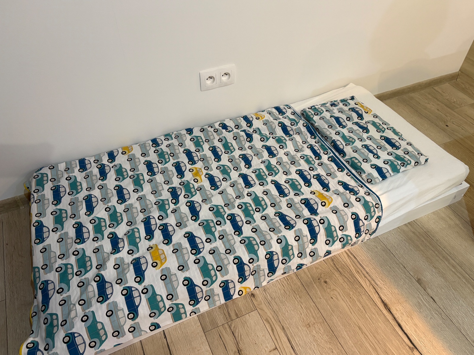 Predám drevenú, nízku montessori postieľku s kokosovým matracom, vyzerá ako nový, bez fľakov alebo známok používania. Rozmery postielky 160x70, používaná 1,5 roka 10kg dieťaťom. Pribalím protektor, plachtu, perinku a podhlavník a Ikea obliečky. V prípade záujmu viem predať matrac samostatne. V ponuke mám aj tipi-postieľku pre staršieho súrodenca.
