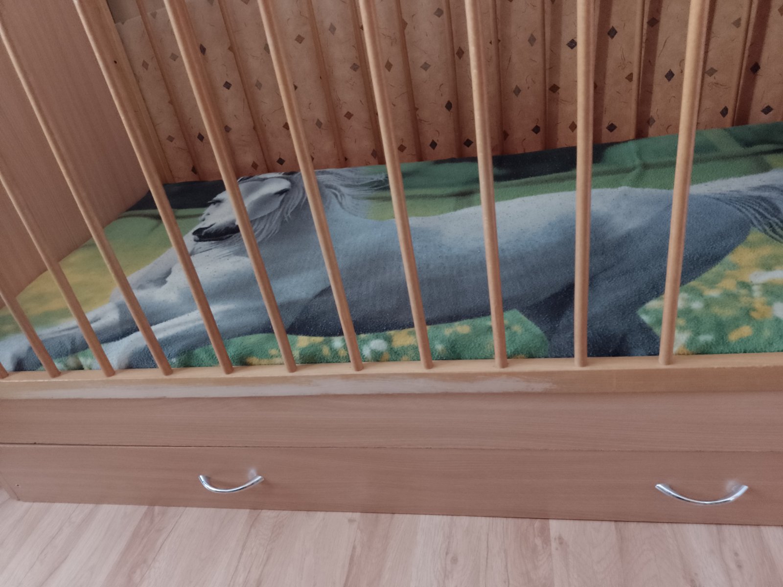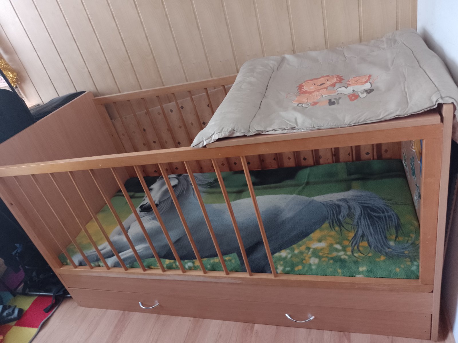 Predám používanú detskú postieľku s úložným priestorom a prebalovacím pultom. Rozmery 77 x 165 cm. Matrac 70 x 165 cm. Iba osobný odber BJ. Cena 50€.