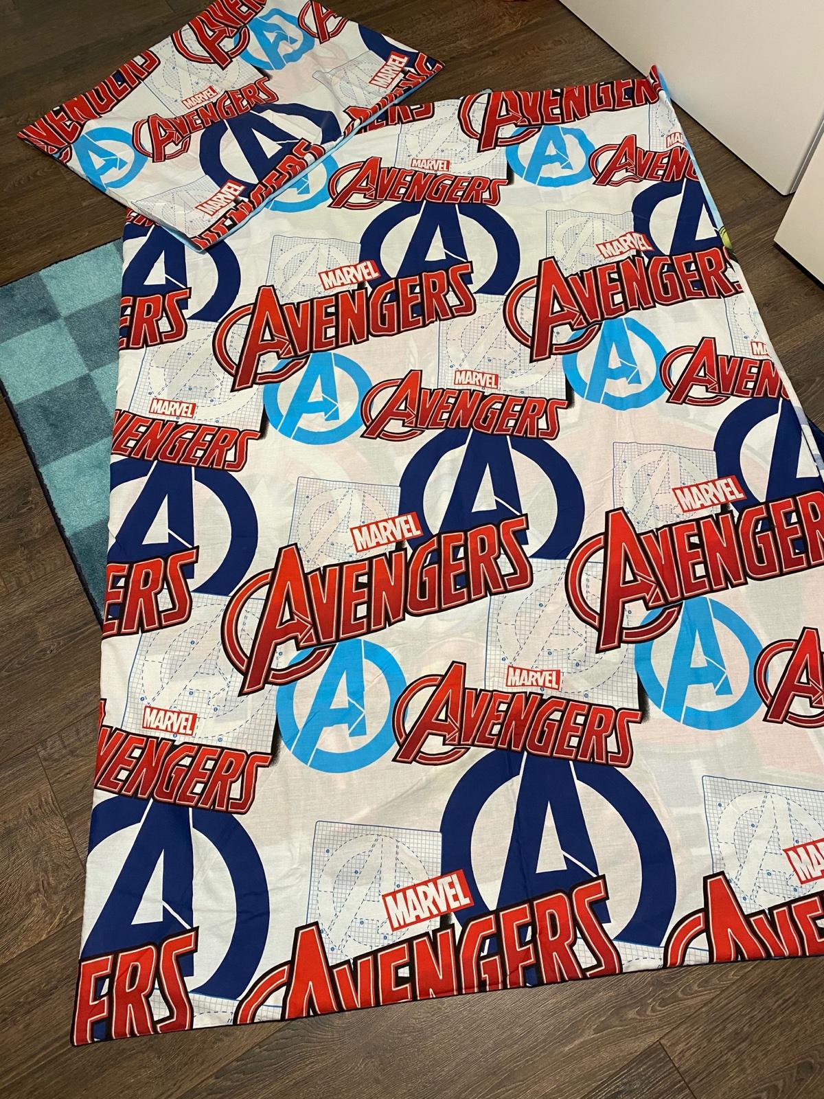 Predám obliečky Avengers, klasický rozmer na veľký paplón a vankúš. Z každej strany iný motív, zapínanie na gombíky. 1x prané, máme toho veľa...