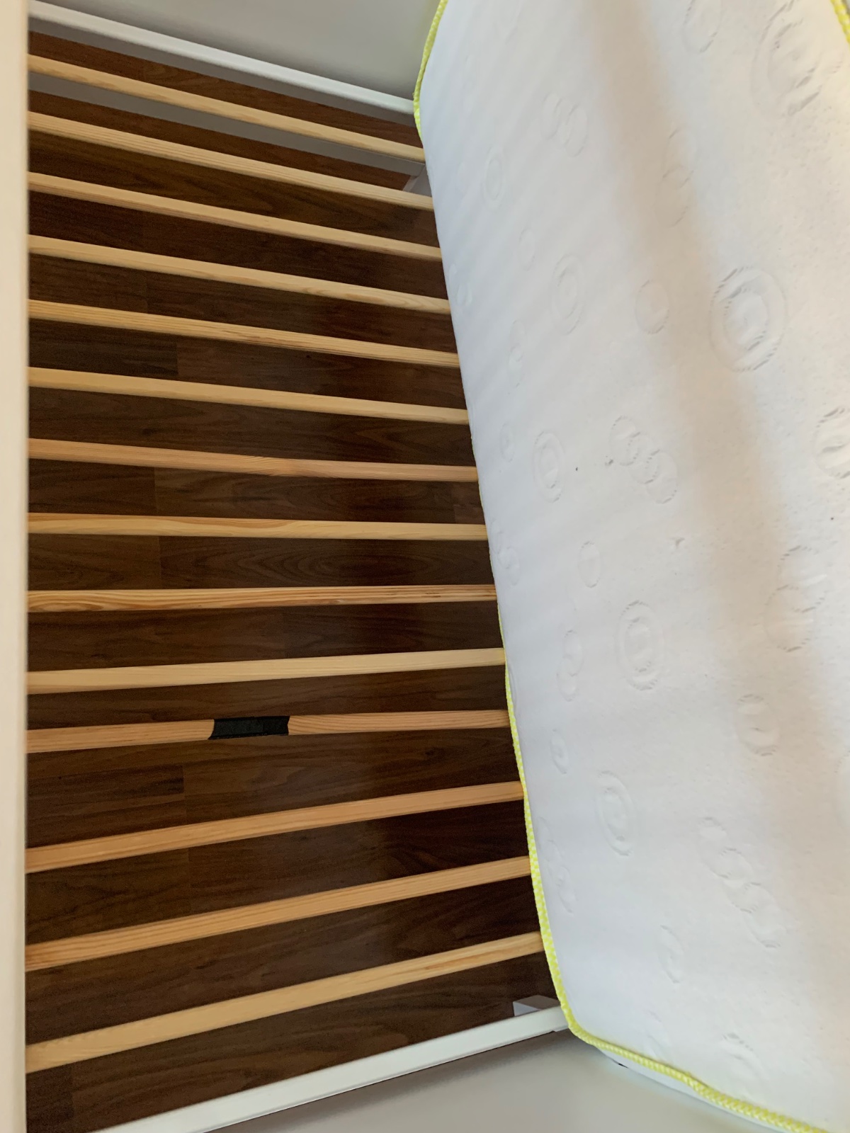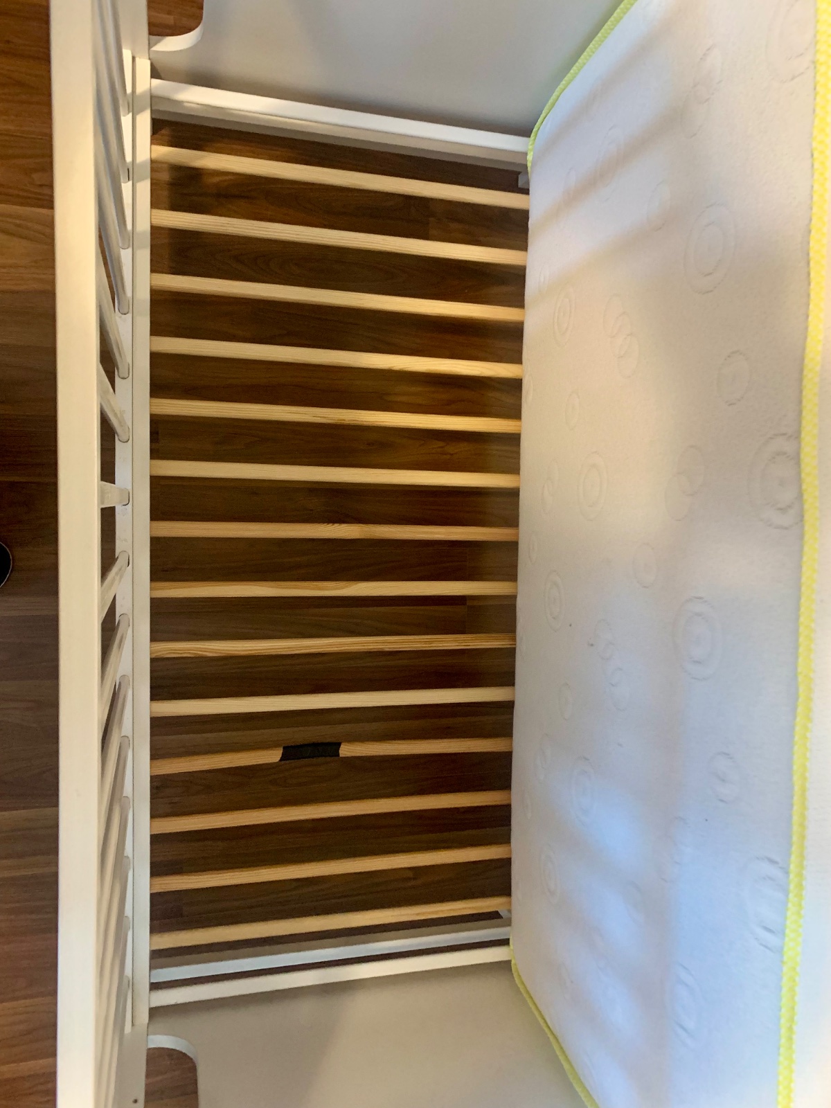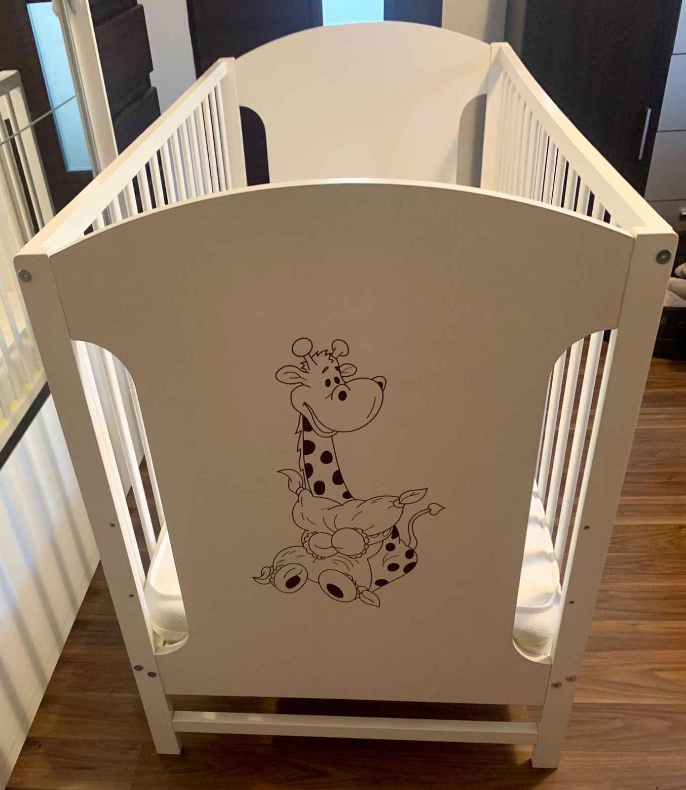 Detská postieľka, 3 úrovne nastavenia výšky. Jediná chybička krásy, zlomená jedna lamela viď foto. K postieľke je aj 3-vrstvový matrac KOKOS-MOLITAN-KOKOS 13cm. Poťah je možné odzipsovať a prať. TOP STAV (až na tú lamelu, cena tomu prispôsobená). Pri rýchlom jednaní, môžem pribaliť aj plachty, jedna aj nepremokavá -biela. Ak kúpite aj monitor dychu, dám naň zľavu. Pre viac info píšte.