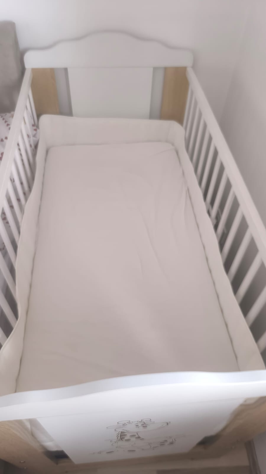 Postielka ma obe strany ! Len som fotila bez jednej strany …Detská postieľka má veľkosť 60 x 120 cm a jej súčasťou je aj rošt. Výšku matraca je možné nastaviť do troch úrovní a keď zložíte postrann...