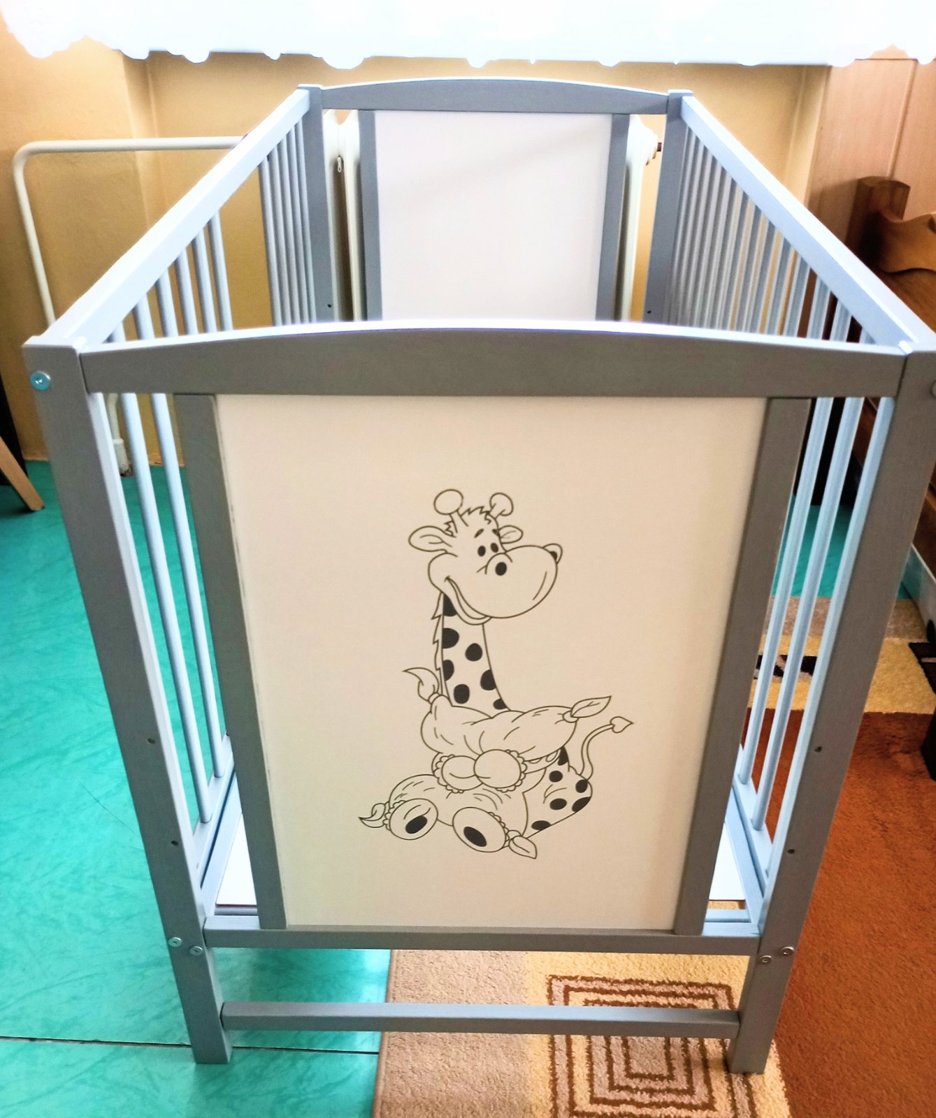 Predám nepoškodenú detskú postieľku s matracom 120x60 cm. Sivá farba. Používaná dva roky. Výškovo nastaviteľná, s vyberateľnými priečkami (viď foto), aby mohlo už väčšie dieťa samo vyjsť z postieľky. K postieľke prikladám tri nepremokavé plachty. Osobný odber Omšenie.