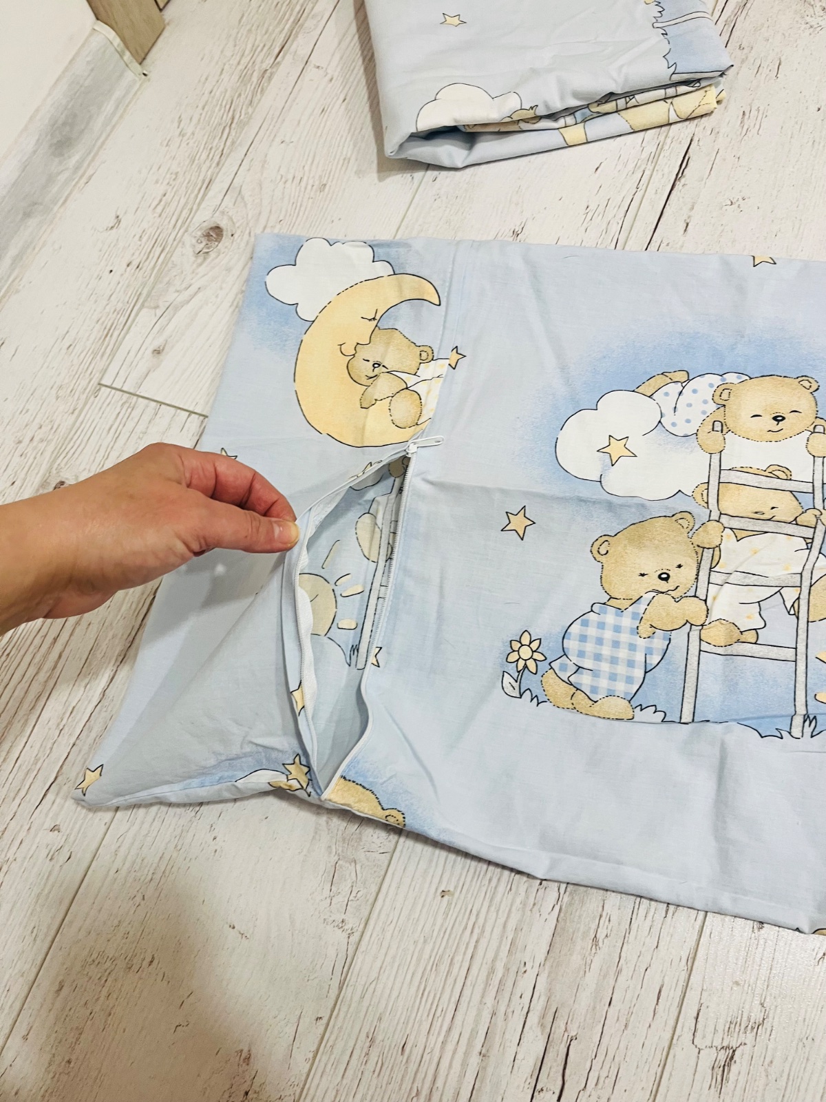 Postelne prádlo bez poškodenia. Zapínanie na zips.