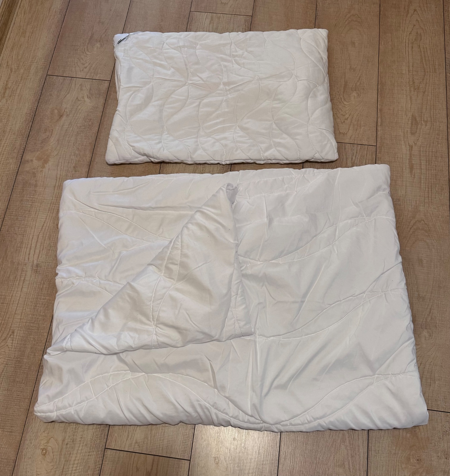 Predám set antialergického detského paplóna s vankúšom do detskej postielky so 4 druhmi obliečok. Všetko minimálne používané, ako nové (malý spával nakoniec vo veľkej posteli). Rozmery paplóna 130 x 90 cm, vankúša 65 x 45 cm. Všetko kupované z jimi textilu. Cena spolu 35 eur.