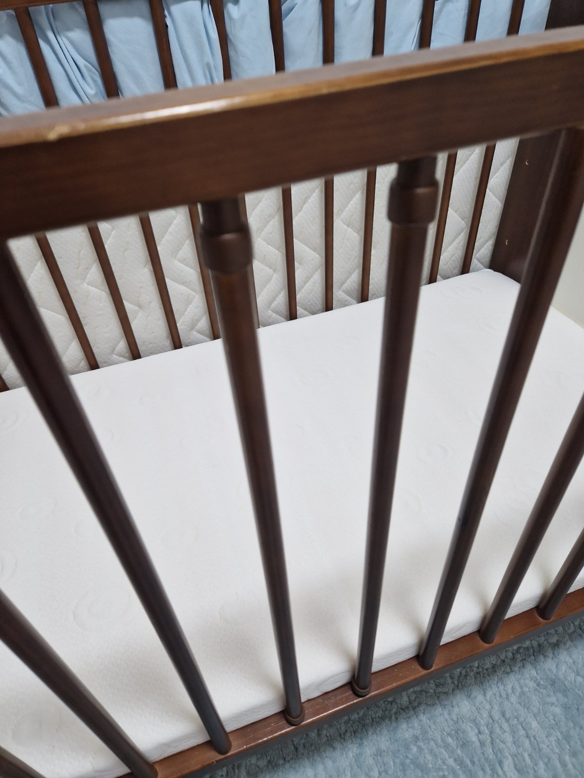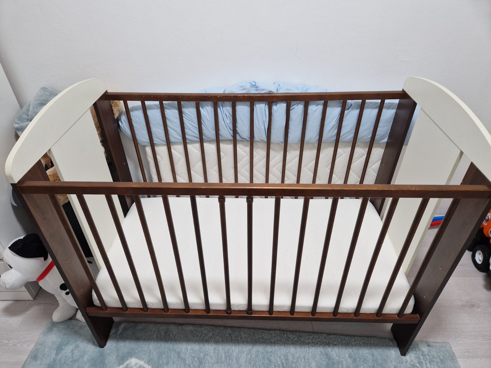 Predám detskú postieľku rozmer 120x60 . Postieľka má výškovo nastaviteľný rošt 3 výšky. Nemá žiadne vady okrem mierne zošúchanej hornej hrany . Na postieľke sú 2 vyberateľné tyče. K postieľke priložím aj matrac ako nový čistý ,2x nepremokavé plachty, 2x klasické . Osobný odber Podunajské Biskupice. Postieľka je v demontovanom stave.