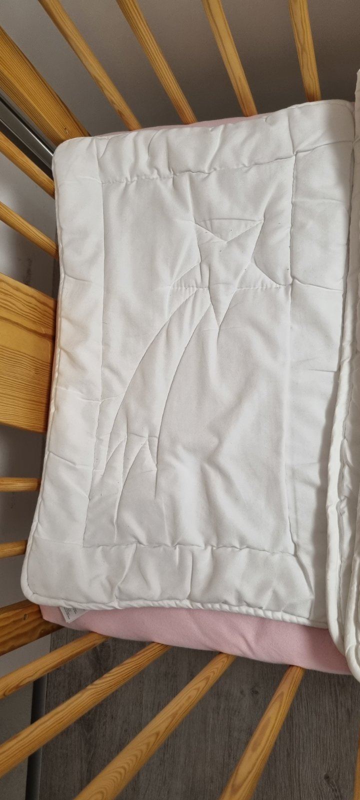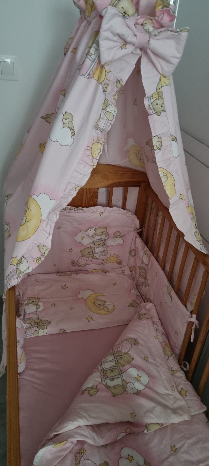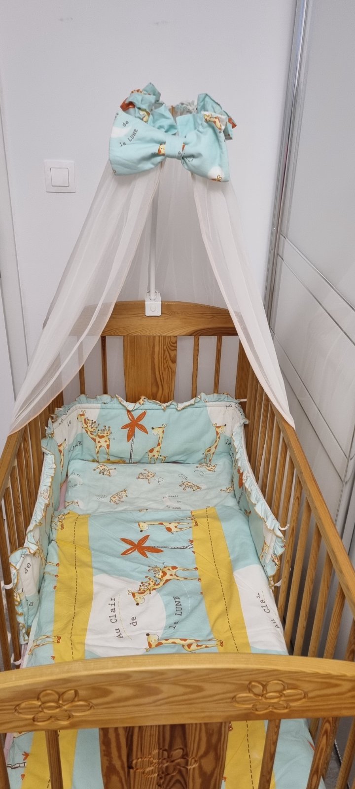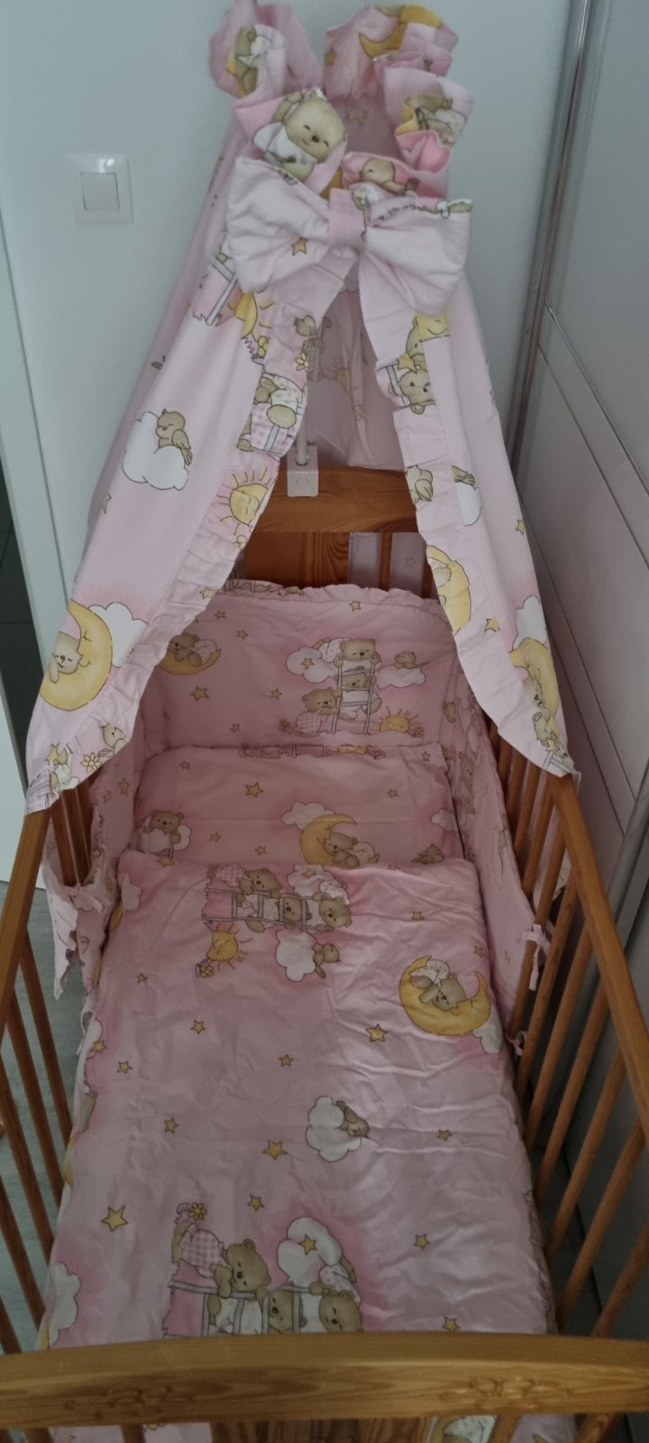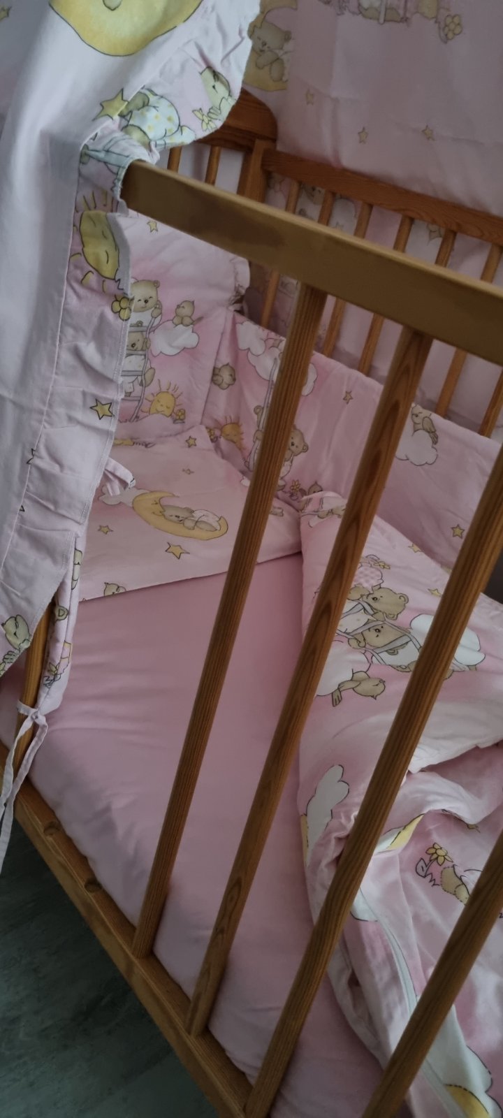 Predám detskú drevenú postielku s vyrezávanými kvetami spolu s kvalitným matracom s kokosovým vláknom o rozmere 60x120cm a konštrukciou na baldachýn. Postielka sa jednoducho montuje je ľahká a nastaviteľná do 3 výšok. Má vyberateľné 2ks paličiek na vychádzanie a vchádzanie dieťatka z postieľky. V prípade záujmu pribalím aj vankúšik s perinou spolu so 4ks napínacich plachiet na matrac (3ks biele 1ks ružová )+ 2ks komplet obliečok viď na foto v modrej a ružovej farbe + 1ks obliečok staroružovej farby s popisom úplne nové ako darček. Obliečky 2ks boli používané, ale sú zachovalé. Jediná vada na postieľke je viď na foto troška vylámané drevo pri vyberaní paličiek. Cena je bez poštovného osobný odber možný. V prípade akýchkoľvek otázok mi neváhajte napísať