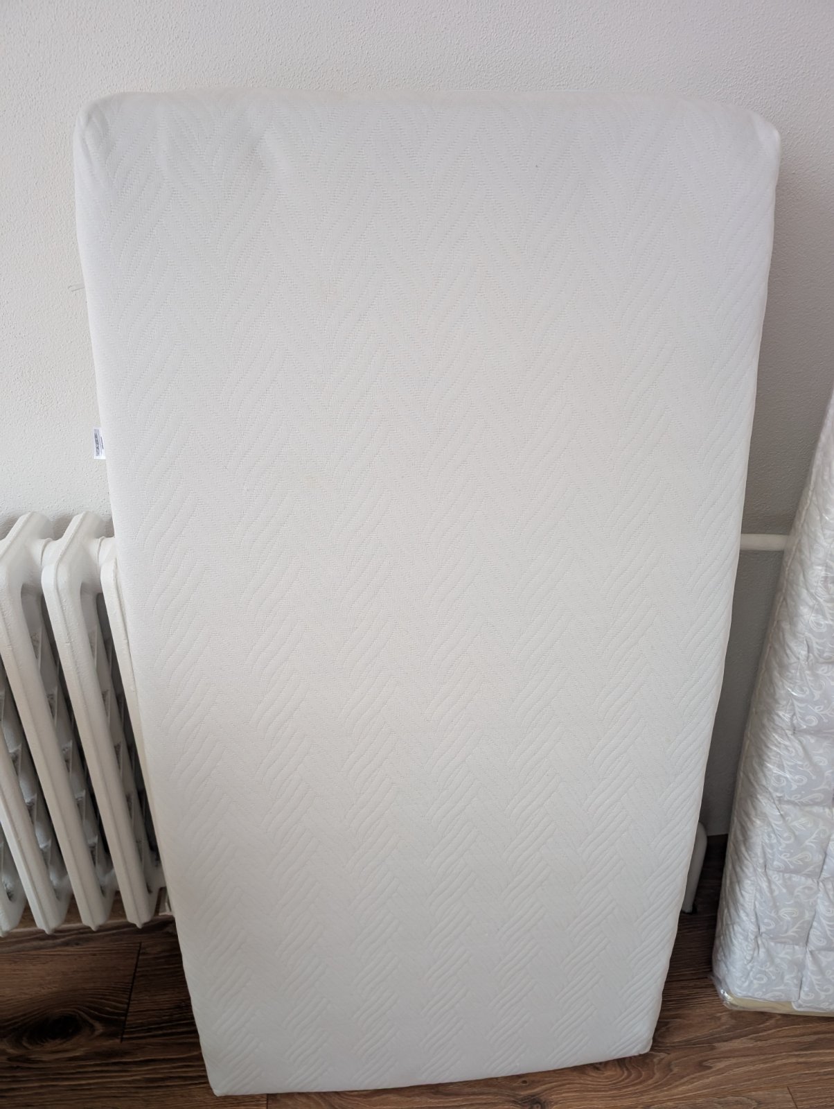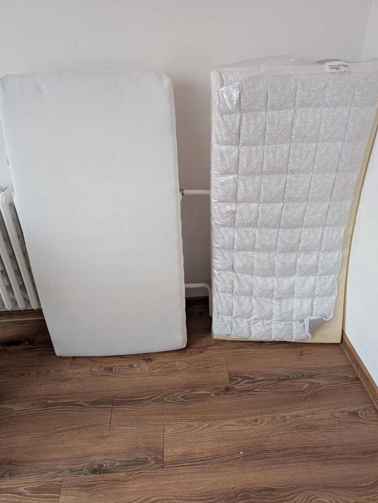 Z dôvodu poškodeného zipsu sme kúpili matrac nový, no medzitým sa naučila spinkať na veľkej posteli, oba matrace sú veľmi dobré pre malé dieťatko.