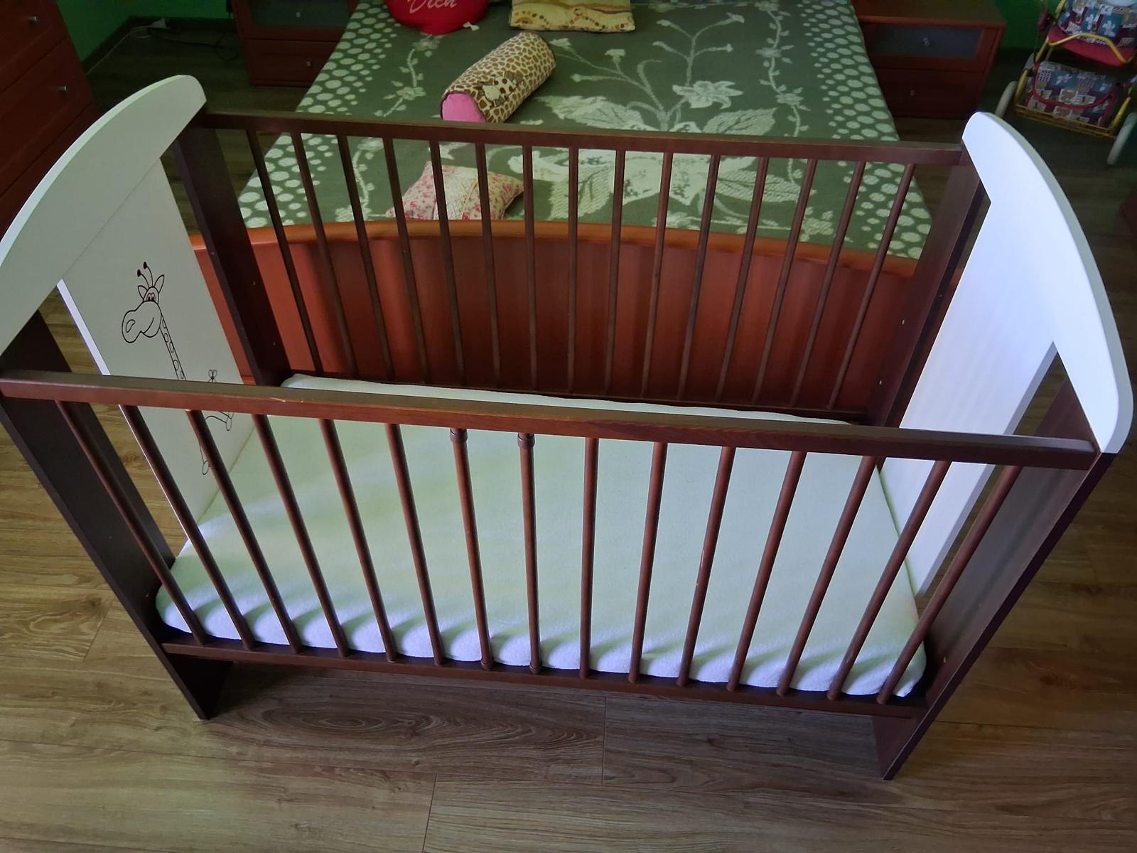 Hnedo biela postielka so zirafou+ matrac,plachta,p