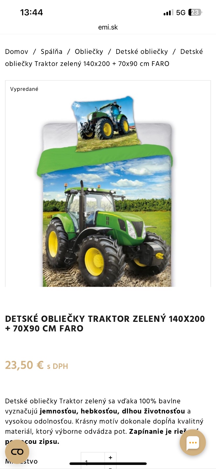 Návliečky s motívom traktor. Nové nepoužité.