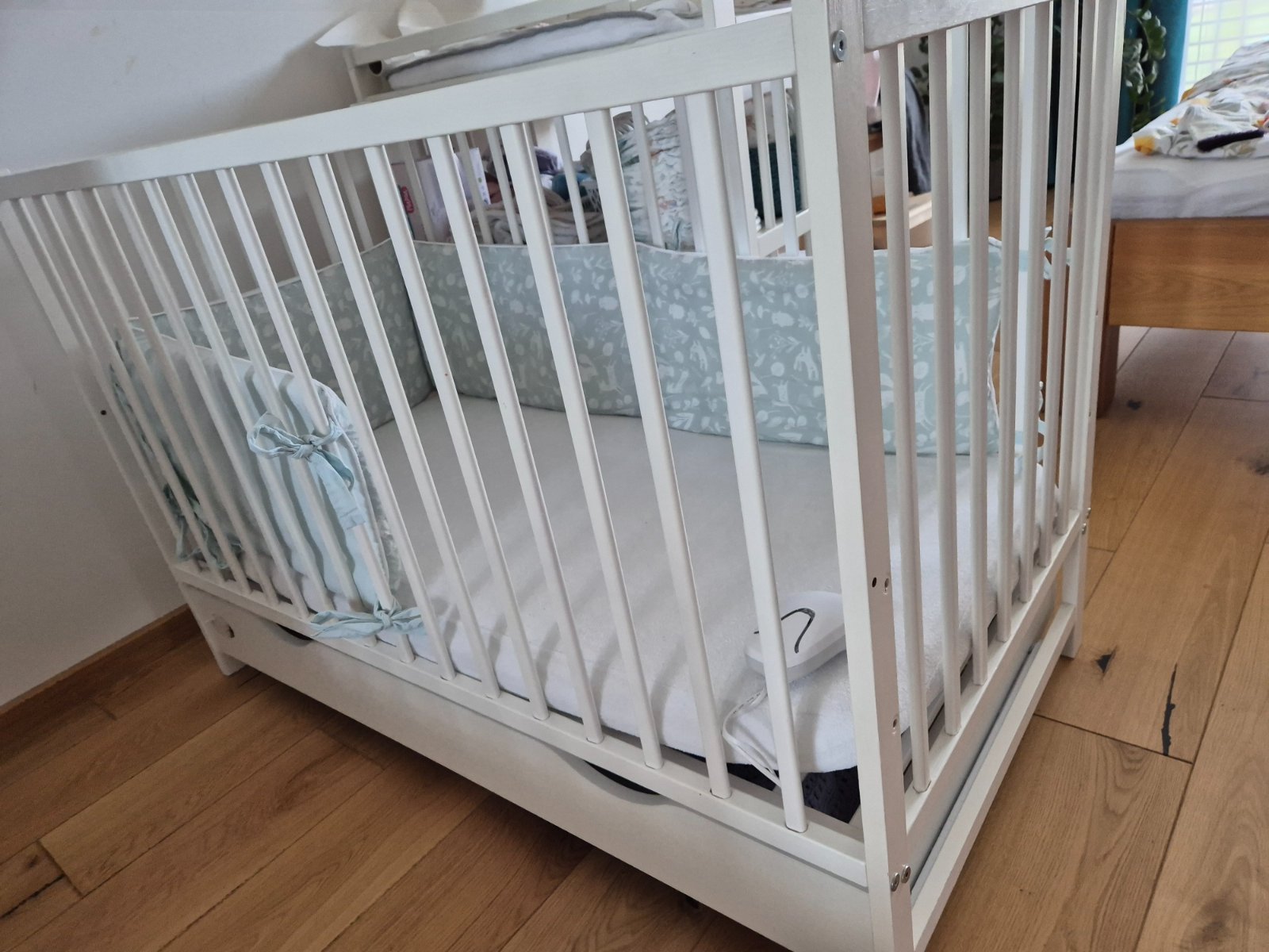 Predám drevenú detskú postielku, so suflikom, matracom a mantinelom