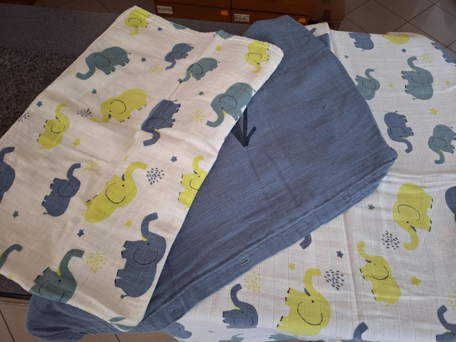 Súpravička do postieľky so sloníkmi. Hniezdo cca dĺžka 204 cm, šírka 25 - 38 cm Obliečka na paplónik cca dĺžka 118 cm, šírka 85 cm Obliečka na vankúšik cca dĺžka 59 cm, šírka 38 cm Zavinovačka cca ...