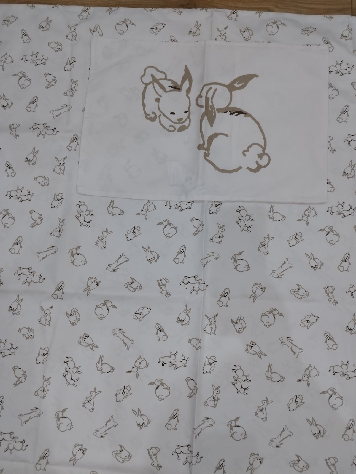 Posteľná bielizeň do postieľky, zajace vzor/biela/béžová, 110x125/35x55 cm