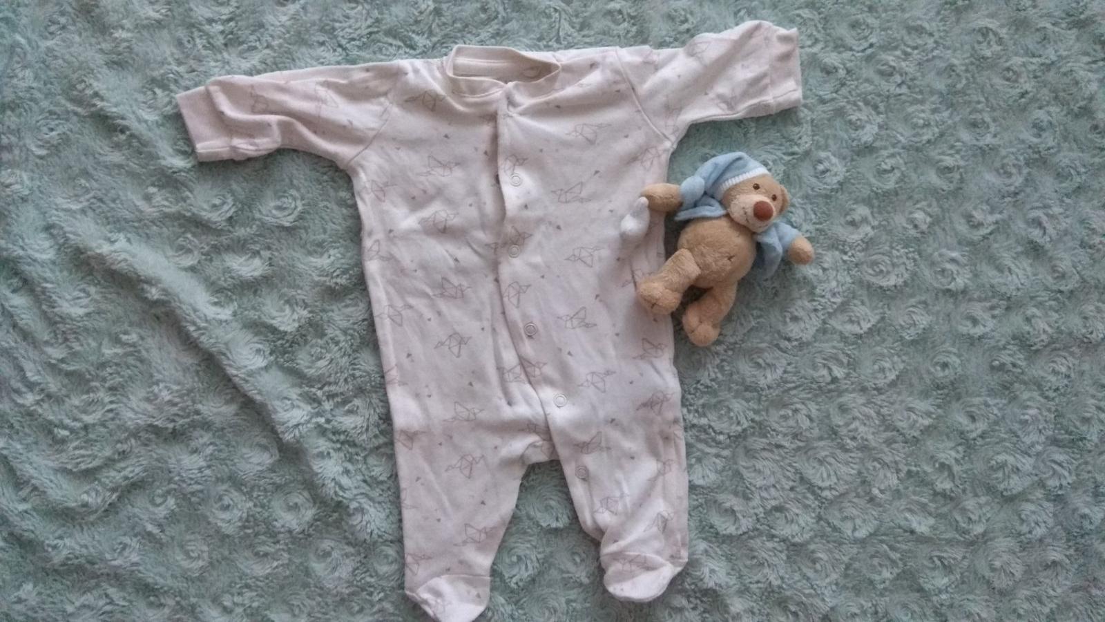značka Kim, vrch: dlžka 72 cm, šírka 53x2 cm, rukáv 50 cm, nohavice: pás do gumy 35-48x2 cm, dlžka 105 cm, sed 38 cm
