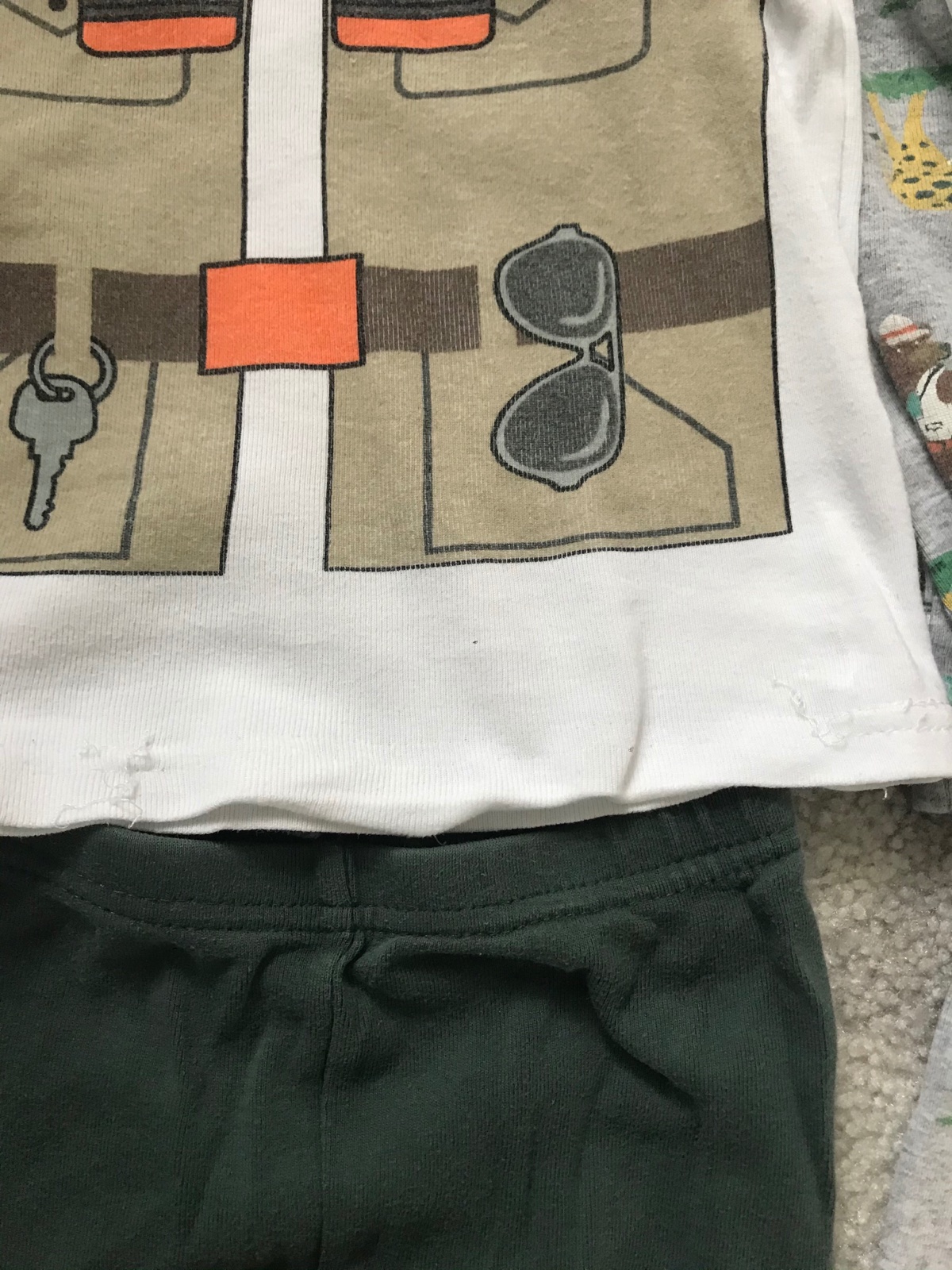 Krásne makkučke pyžamka kvalitnej znacky, skor na chudšie deti tipu slim, jedno bez chyby, jedno sa trosku pare.