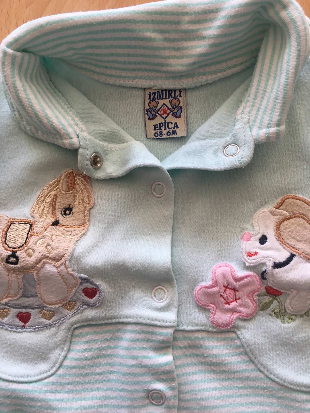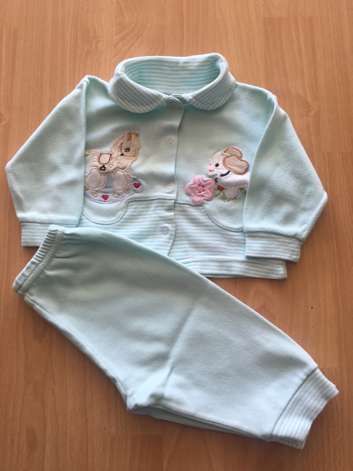 Krásne teplucke pyzamko s výšivkou, bez poškodení. Malo nosene mali sme toho veľmi veľa. Veľkosť sedí na 6 mesiacov, 68.