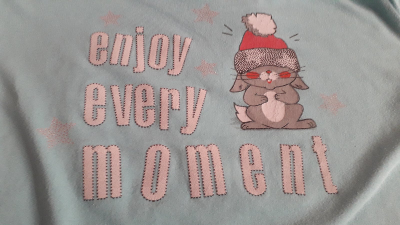 Nádherné pyzamko, zachovale bez známok nosenia. Dĺžka trička 61 cm, dĺžka nohavic 93 cm. Cena plus poštovné.