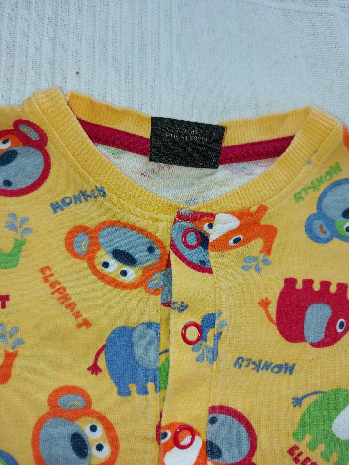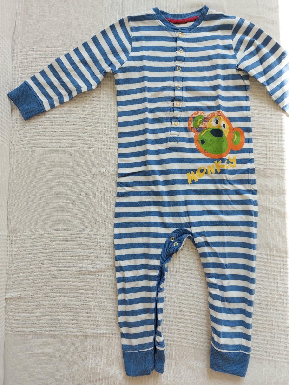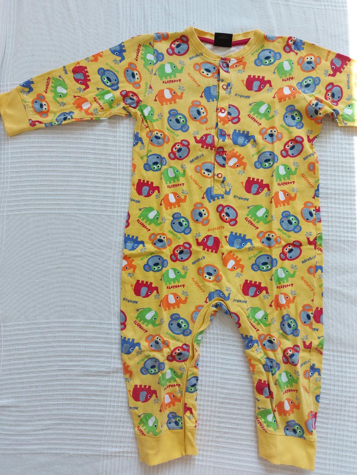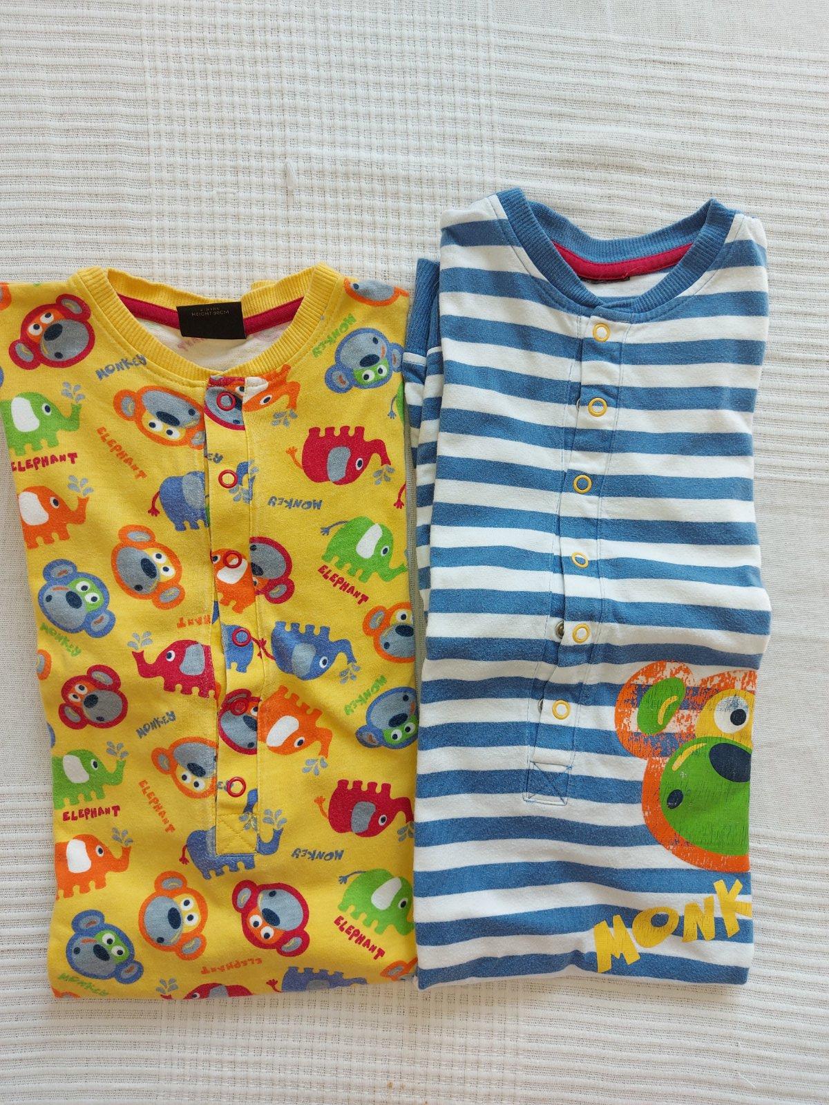 Predám 2 pyžamká NEXT. Zapínanie pri krku aj medzi nohami. Žlté pyžamko má na jednom rukáve čierne bodky (na foto). Spolu 10 EUR, samostatne po 6EUR.