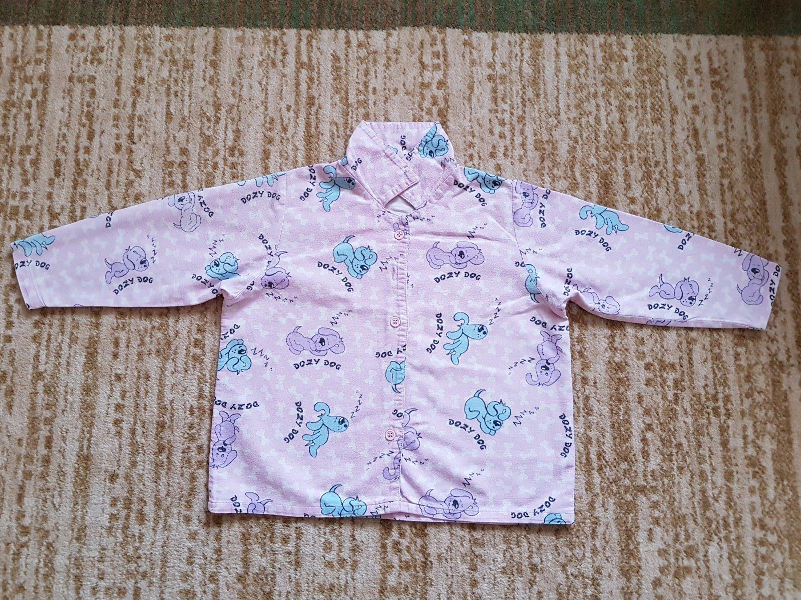 Predám bavlnené dievčenské pyžamko. Bolo dosť nosené, nemá žiadne vážnejšie poškodenia (fľaky ani diery), ale látka je už obopraná. Doma na spinkanie je však stále dobré.
