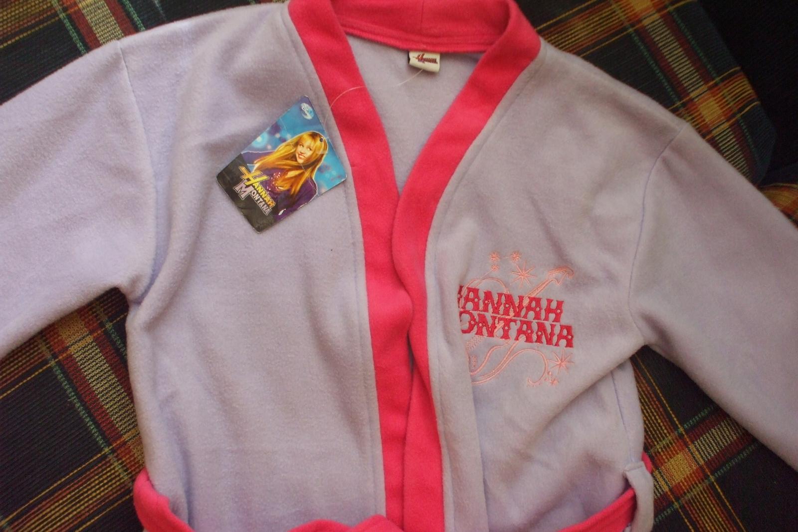 Krásny a mäkký nenosený župan Hannah Montana, originál v licencii, ešte s visačkou. Pôvodná cena na visačke 18,60, kúpený v akcii. Píšu veľkosť 134, ale podľa nás už aj ako 128-ka.