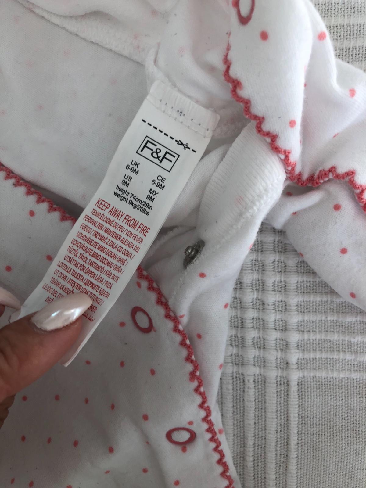 Predám krásne dievčenské dvojdielne pyžamko značky F&F veľkosť 6-9mesiacov (74) po jednom dieťati. Oblečené párkrát, skôr veľkosť 68. Cena + poštovné.