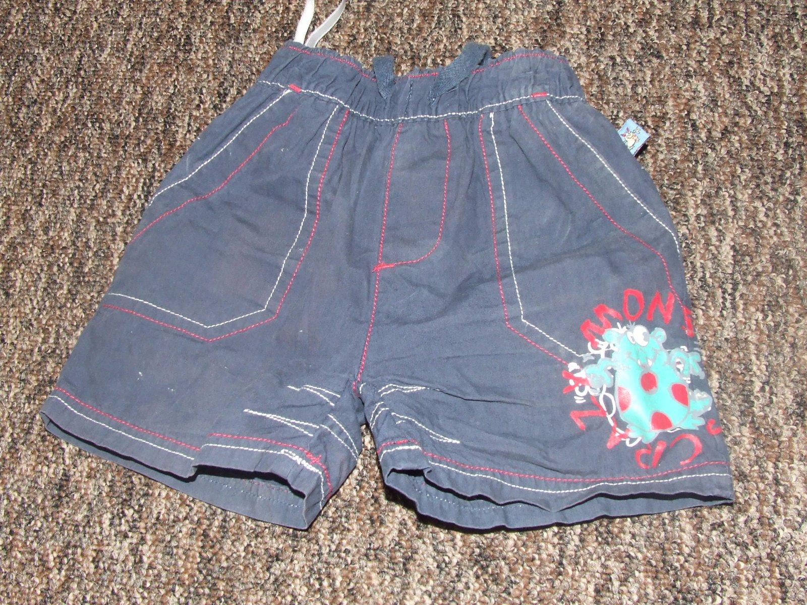 letné kraťasky, nosili sme ich oveľa dlhšie, aj ako ročný a viac, čiže sa dajú nosiť najskôr ako trištvrťáky a potom šortky... žiadne diery, farba nevyblednutá-fotka skresľuje, prípade záujmu potom ešte raz odfotím, cena 2 e + pošta