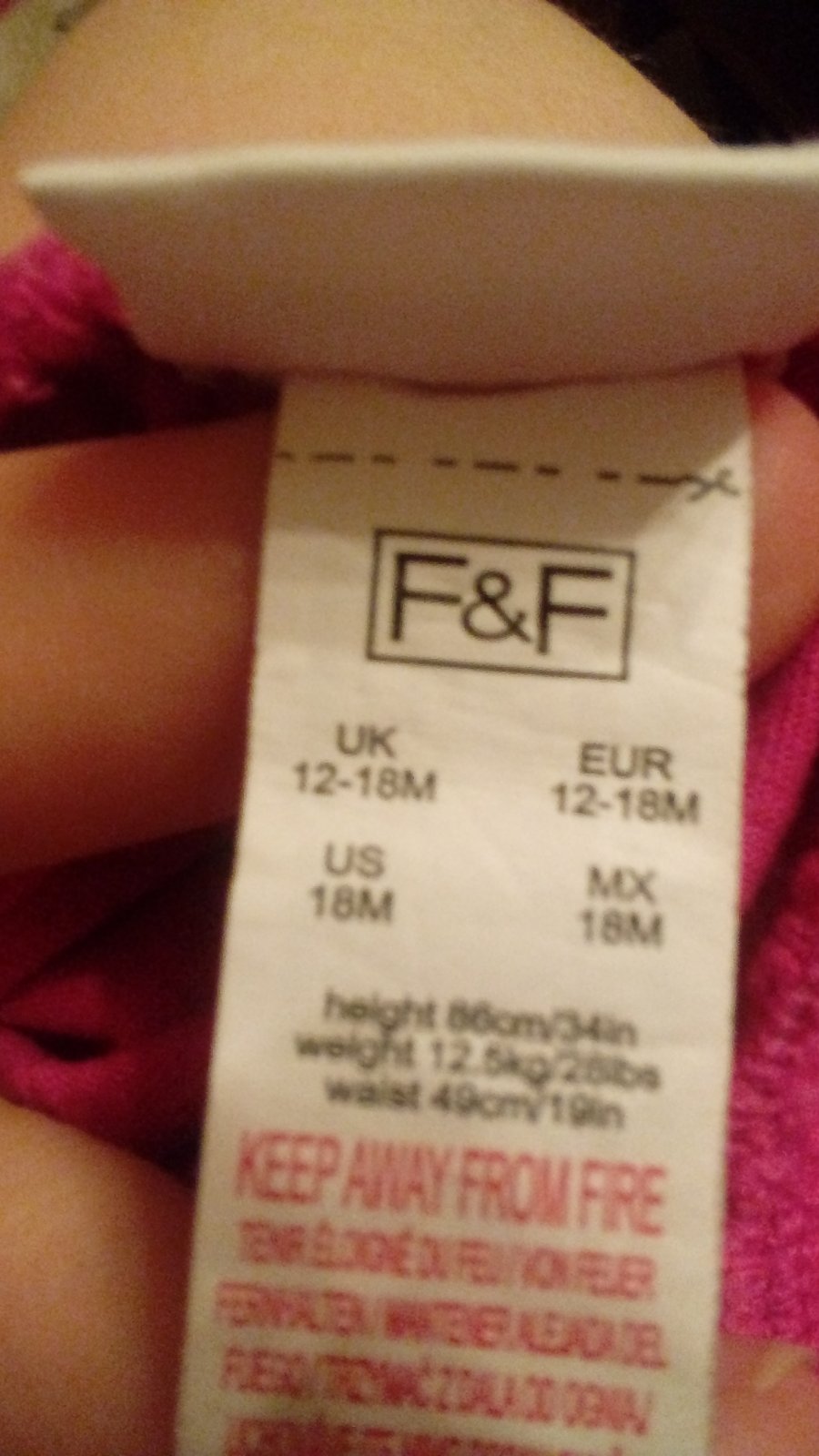 velkost 12-18, ale podla mna je to do 2 rokov v pohode, zn. F&f, snurky su na ozdobu, snurky nie su funkcne, su len na ozdobu, bez chyb